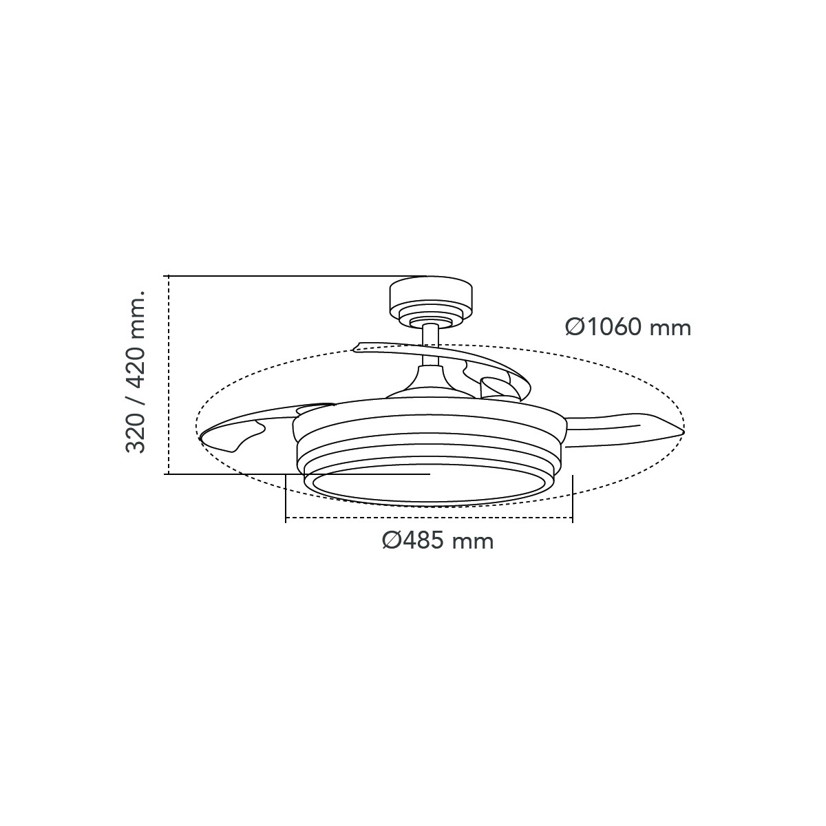Ventilateur LED pales pliantes Lander Noir 72W 7920Lm CCT