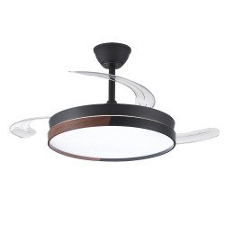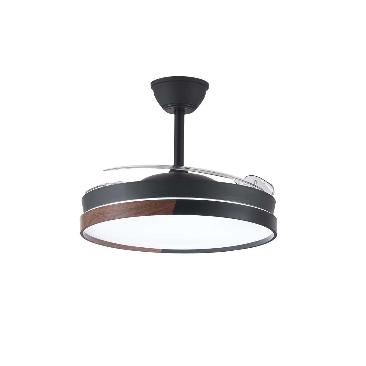 Ventilateur silencieux à faible consommation d'énergie. Ventilateur noir avec décoration effet bois, très pratique pour les chambres et les salons grâce au faible niveau sonore qu'il émet. Son moteur à courant continu à six vitesses est très silencieux et se contrôle facilement à l'aide de la télécommande. Le ventilateur offre un design d'inspiration nordique combinant le noir et la décoration effet bois. L'éclairage LED à économie d'énergie peut être réglé en intensité et en couleur. Fonction Inverter hiver-été, minuterie et mémoire de couleur.