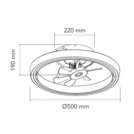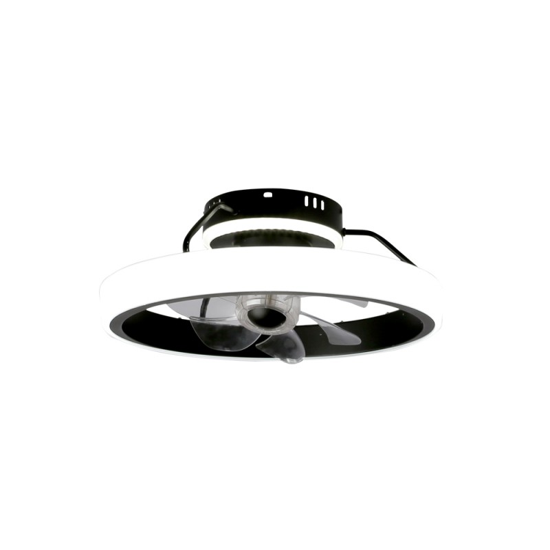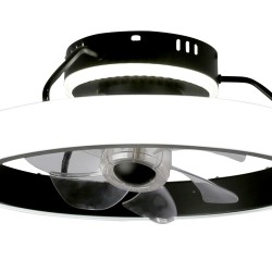 Ventilateur de plafond à LED pour les chambres et les salons modernes. Design de plafond avec éclairage LED et sept petites pales à l'intérieur. Son moteur est très silencieux et dispose de six vitesses de rotation, d'une fonction d'inversion hiver-été et d'une minuterie. Flux d'air concentré dispersé, un système de circulation d'air innovant grâce aux moteurs à axe directionnel, offrant une plus grande surface d'air grâce à sa capacité de rotation. Lampe LED du ventilateur réglable en intensité lumineuse et en couleur. Installation facile au plafond.