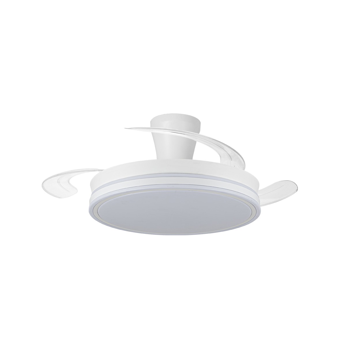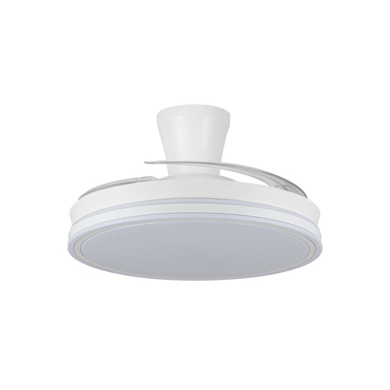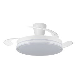 Supereco Long ventilateur lampe silencieux. Ventilateur blanc à pales rétractables conçu pour les chambres à coucher et les salons de taille moyenne (13-20 m2). Son moteur à courant continu à six vitesses émet un minimum de bruit lorsque le ventilateur fonctionne. Il dispose d'un éclairage LED réglable en intensité et en tonalité de couleur. Fonction Inverter hiver-été, minuterie et mémoire de couleurs. Ventilateur silencieux avec pales rétractables et éclairage LED intégré.