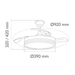 Ventilateur silencieux Milky S Eco avec pales rétractables. Ventilateur de plafond silencieux à pales rétractables conçu pour les petites pièces telles que les chambres à coucher. La télécommande permet de contrôler facilement la vitesse et l'éclairage. Éclairage LED à économie d'énergie, réglable en intensité et en température de couleur. Fonction d'inversion, minuterie, mode brise et mémoire de mise en marche.