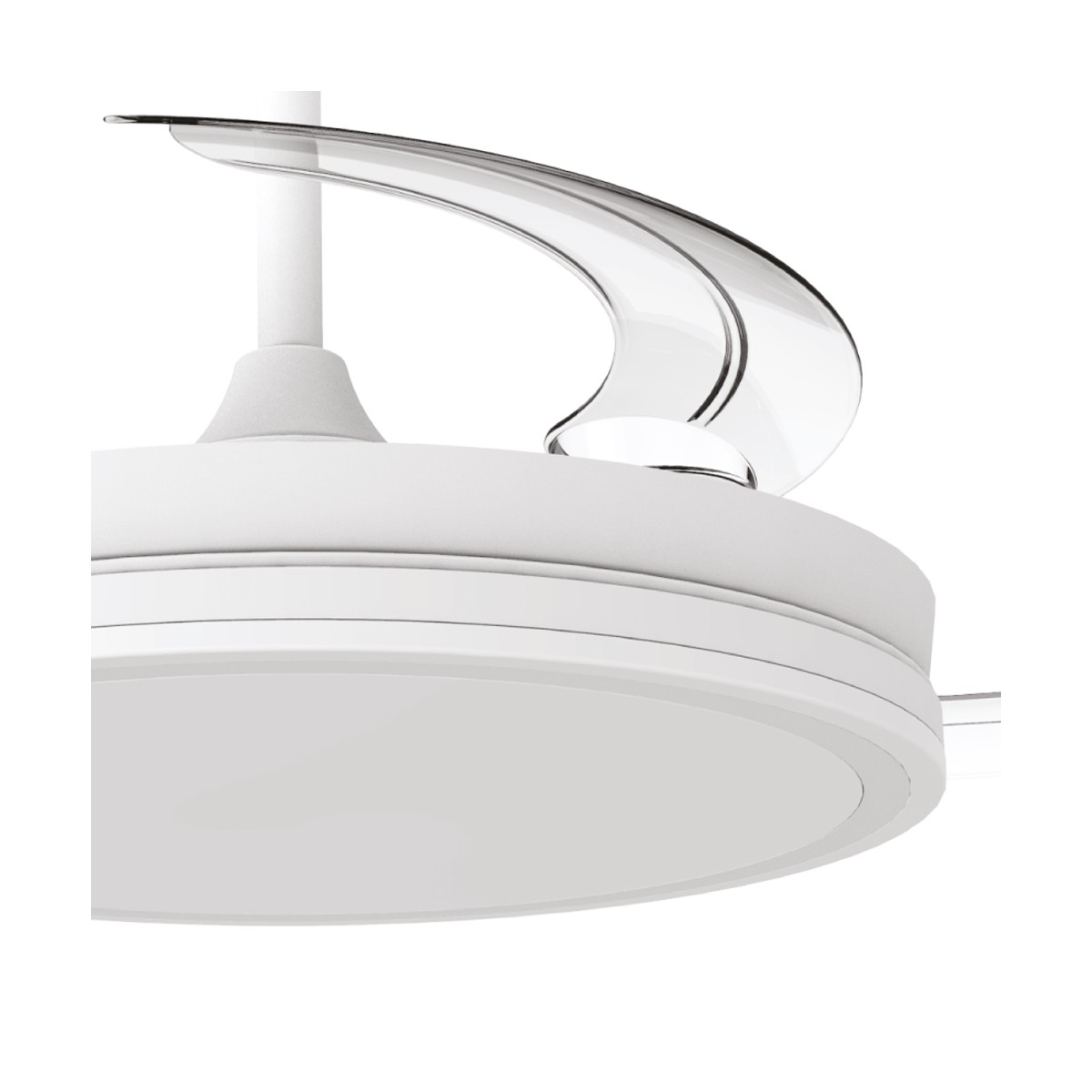 Ventilateur silencieux Night Eco Blanc pour chambres à coucher. Ventilateur blanc à pales rétractables spécialement conçu pour les chambres et les salons. Son moteur à courant continu à six vitesses émet un bruit minimal lorsque le ventilateur fonctionne. Il est doté d'un éclairage LED à économie d'énergie et peut être facilement réglé à l'aide de la télécommande. Fonction d'inversion hiver-été, minuterie et mémoire des couleurs. Ventilateur silencieux avec pales rétractables.