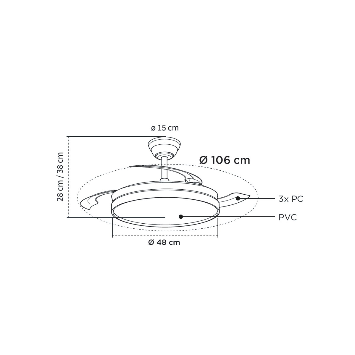 Ventilateur LED pales rétractables Paneco Hêtre 48W 5280Lm CCT Dim