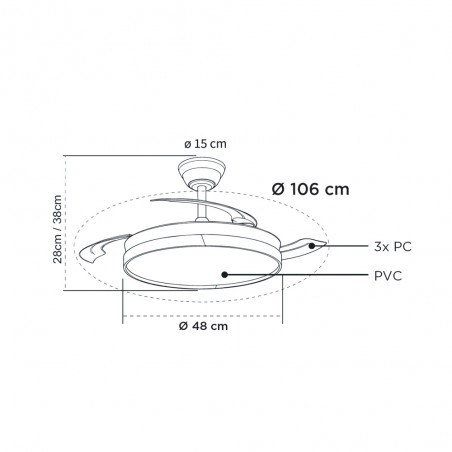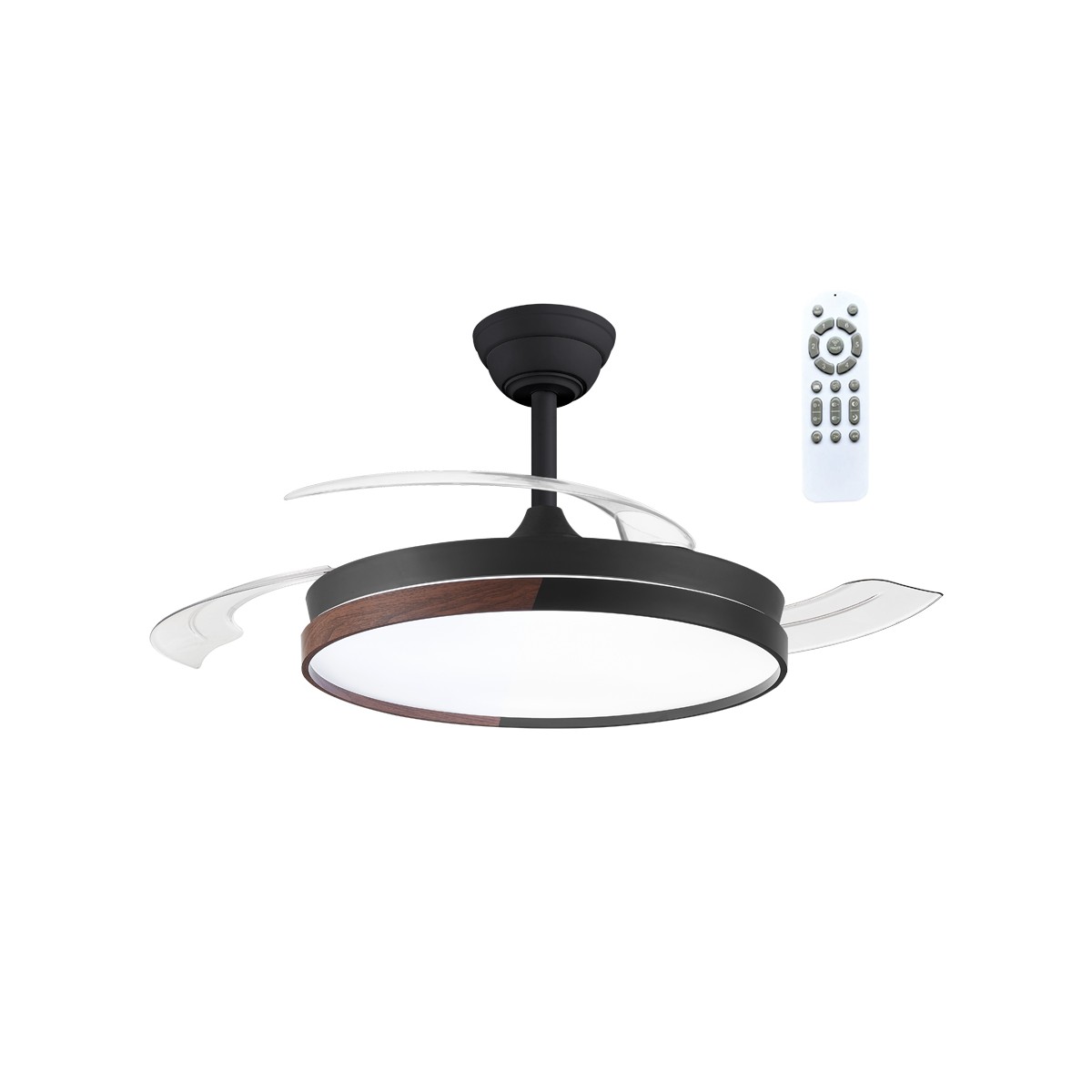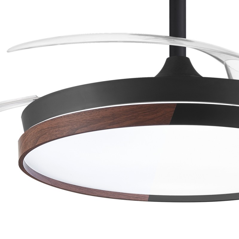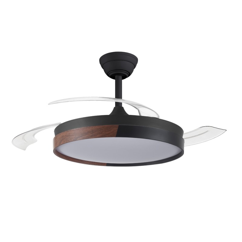 Ventilateur LED pales rétractables Ecoro Noir 48W 5040Lm CCT Dim