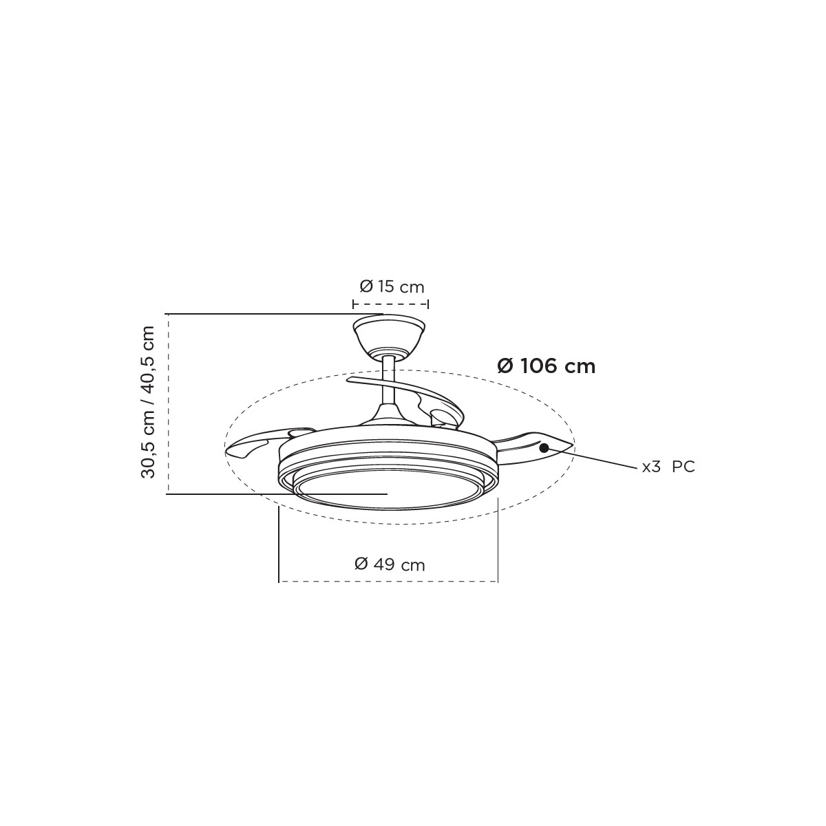Ventilateur LED pales rétractables Nassot Blanc 48W 5280Lm CCT Dim