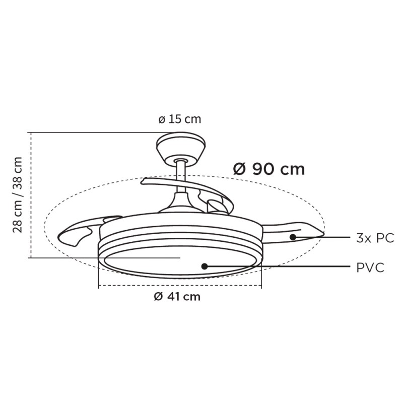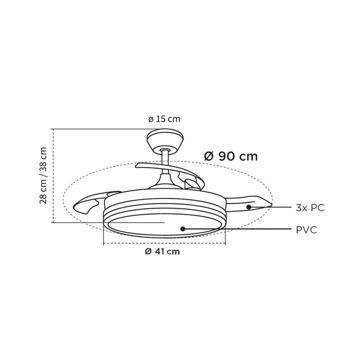 Ventilateur LED à pales rétractables Night Eco S Blanc 39W 4290Lm CCT Dim
