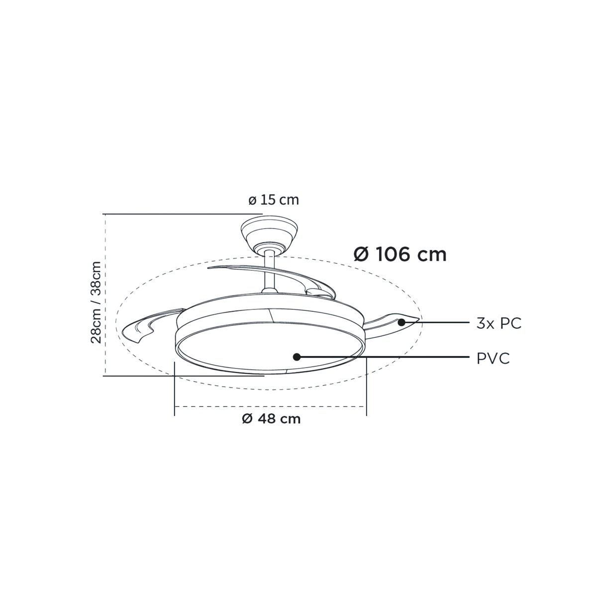 Ventilateur LED à pales rétractables Paneco Mini Hêtre 39W 4290Lm CCT Dim