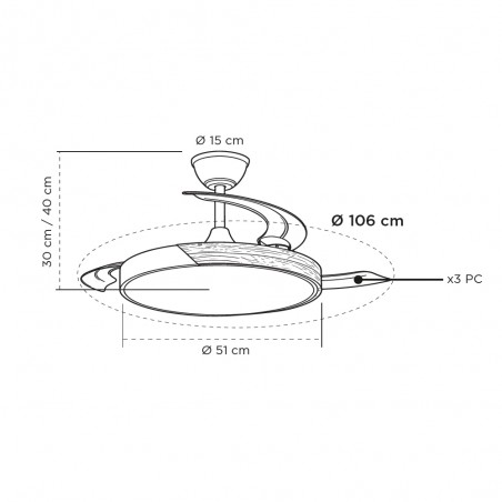Ventilateur LED pales pliables Panam L 80W 8800Lm CCT Dim