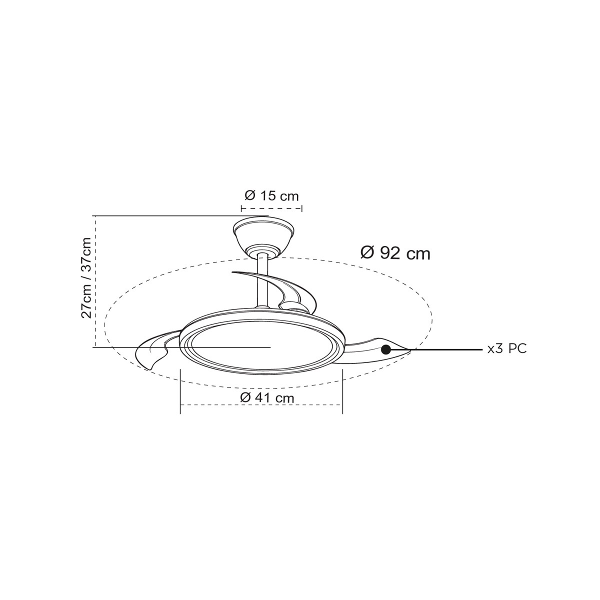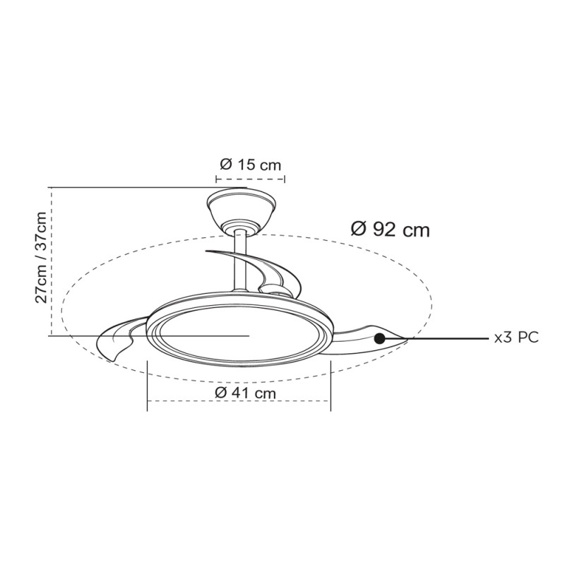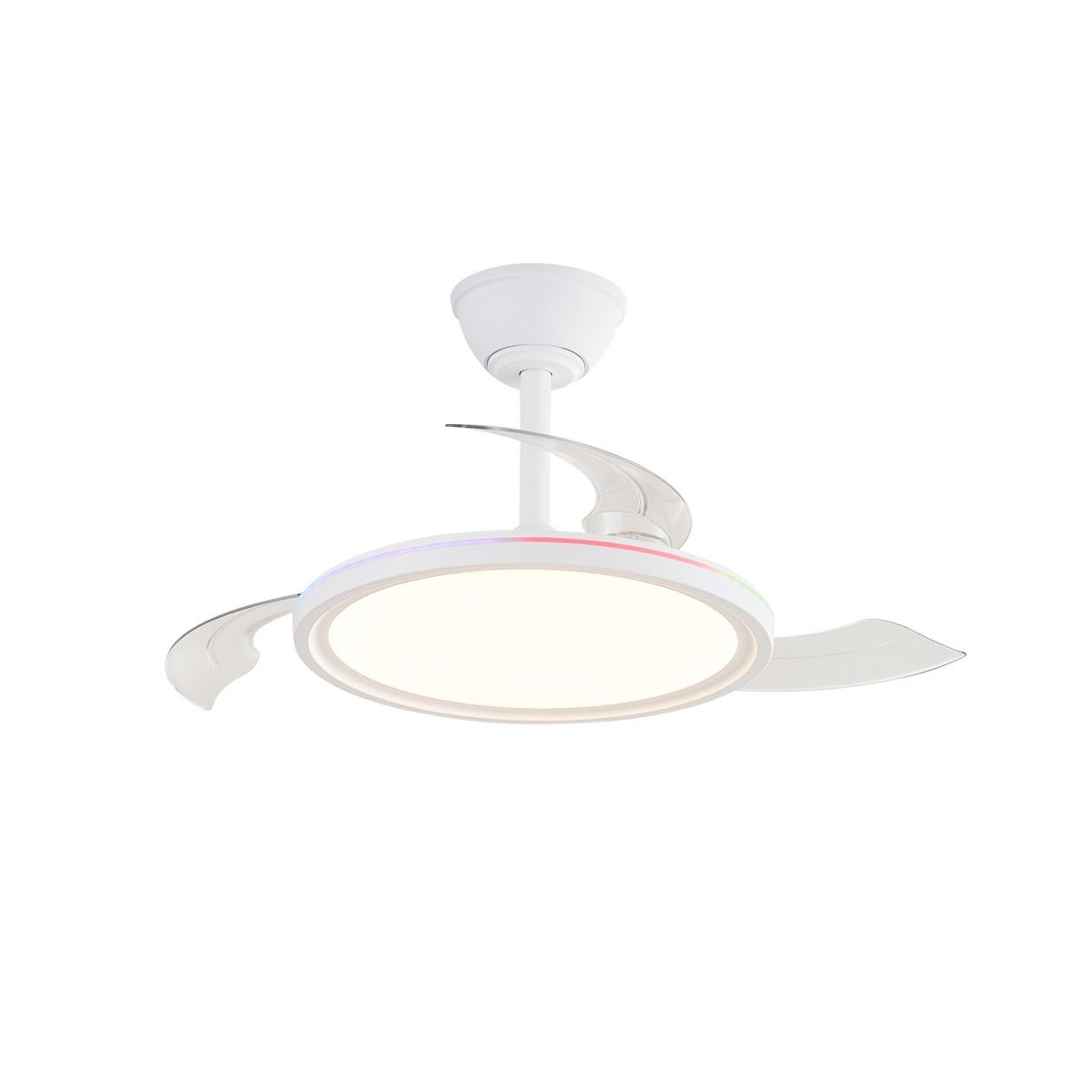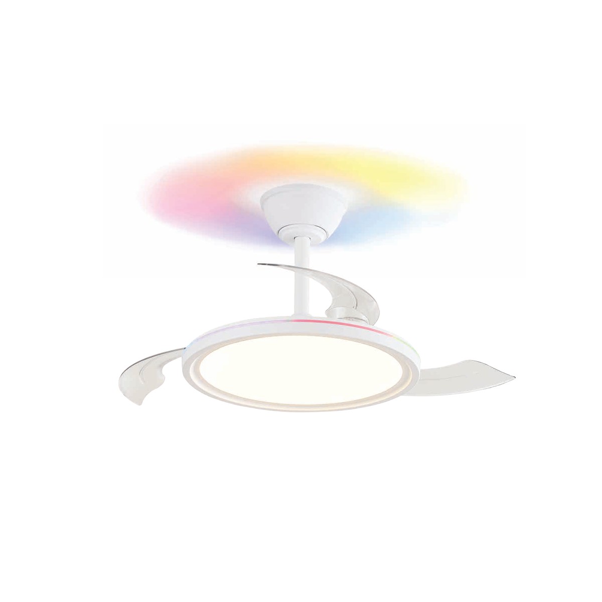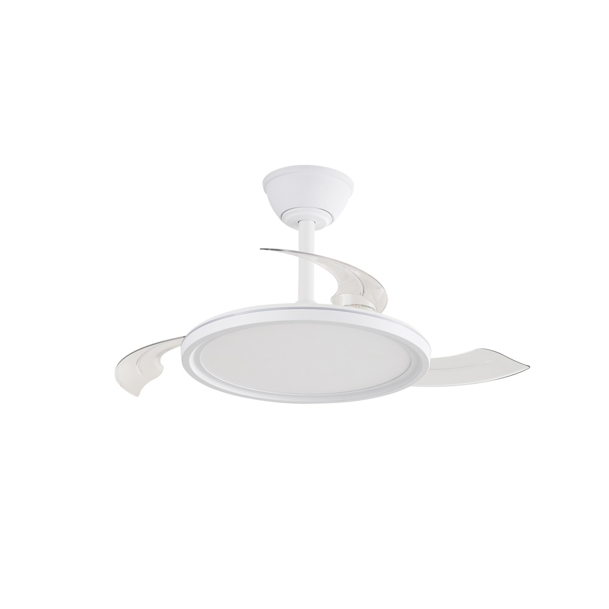 Ventilateur silencieux pour chambres à coucher. Ventilateur blanc à pales rétractables spécialement conçu pour les chambres et les salons. Son moteur à courant continu à six vitesses émet un bruit minimal lorsque le ventilateur fonctionne. Il est doté d'un éclairage LED à économie d'énergie et peut être facilement réglé à l'aide de la télécommande. Fonction d'inversion hiver-été, minuterie et mémoire des couleurs. Ventilateur silencieux avec pales rétractables.