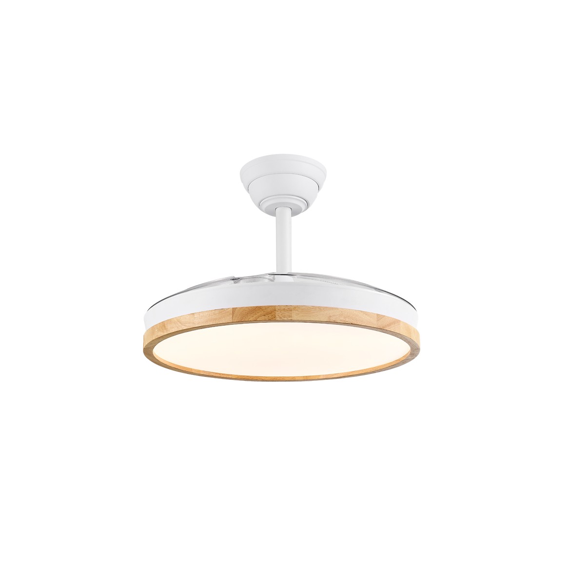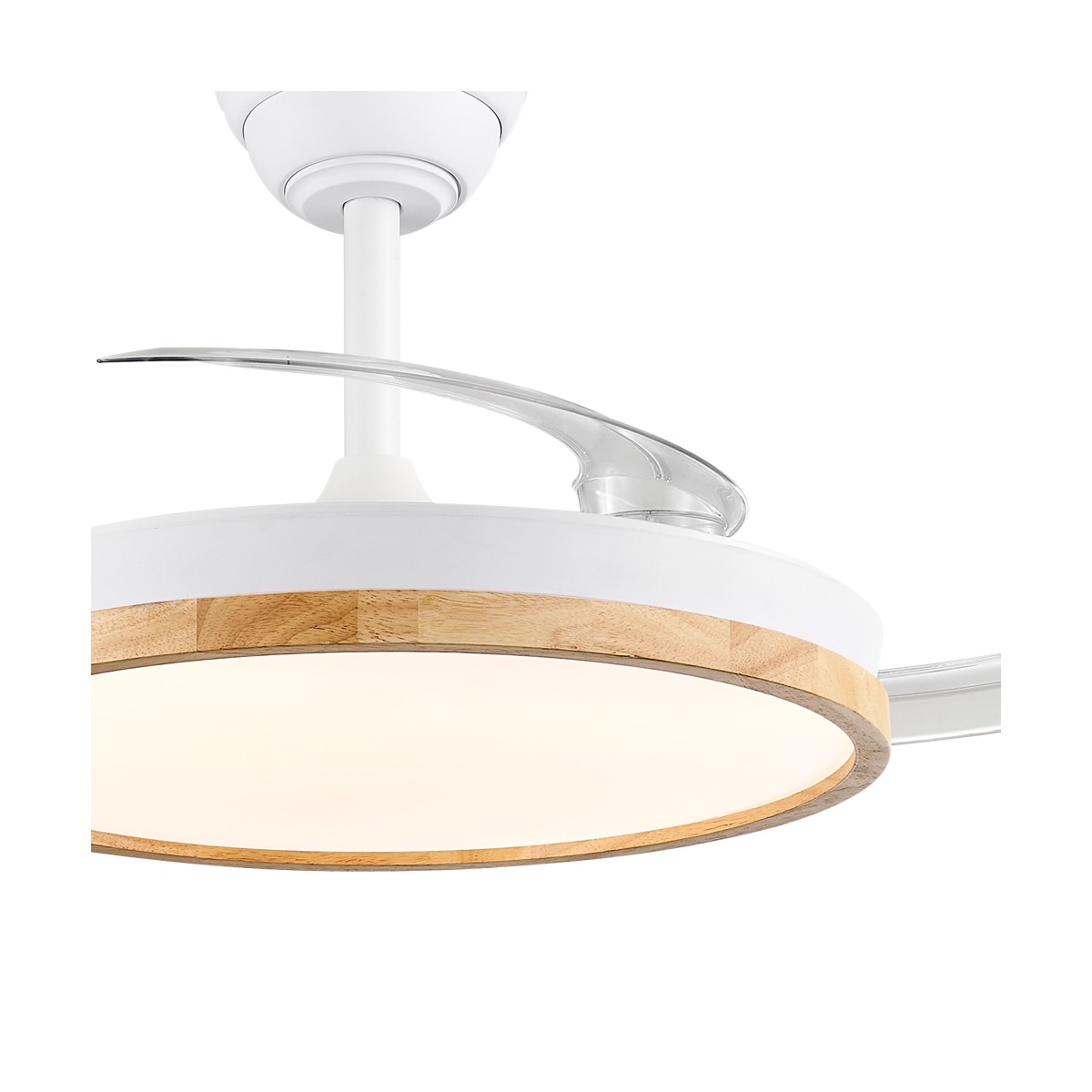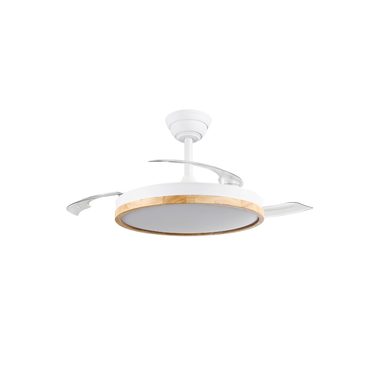 Ventilateur silencieux Chief Blanc pour chambres à coucher. Ventilateur blanc à pales rétractables spécialement conçu pour les chambres et les salons. Son moteur à courant continu à six vitesses émet un bruit minimal lorsque le ventilateur fonctionne. Il est doté d'un éclairage LED à économie d'énergie et peut être facilement réglé à l'aide de la télécommande. Fonction d'inversion hiver-été, minuterie et mémoire des couleurs. Ventilateur silencieux avec pales rétractables.