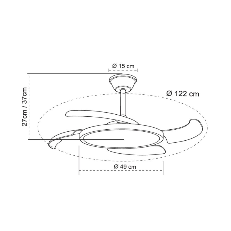 Ventilateur silencieux Key Bois avec pales rétractables. Ventilateur couleur bois avec pales rétractables spécialement conçu pour les chambres et les salons. Son moteur DC à six vitesses émet un minimum de bruit lorsque le ventilateur est en marche. Il est équipé d'un éclairage LED à faible consommation d'énergie et peut être facilement réglé à l'aide de la télécommande. Fonction inverse hiver-été, minuterie et mémoire de couleur. Ventilateur silencieux avec pales rétractables.