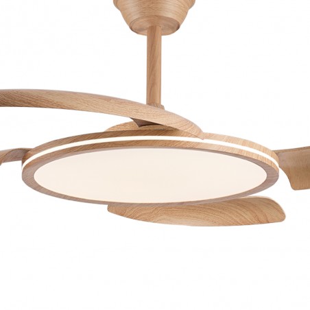 Ventilateur LED à pales rétractables Key Plus Bois 43+15W 4430+750Lm CCT Dim