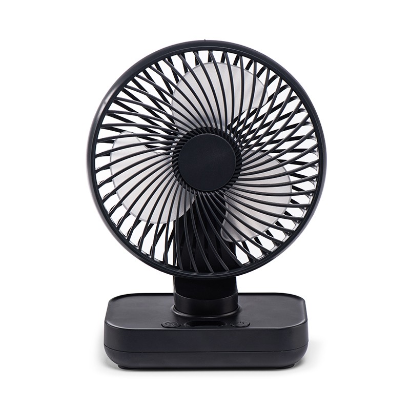 Ventilateur de table avec batterie rechargeable Minifan. Le ventilateur dispose de quatre vitesses de débit d'air et d'une batterie rechargeable pour une utilisation sans fil.