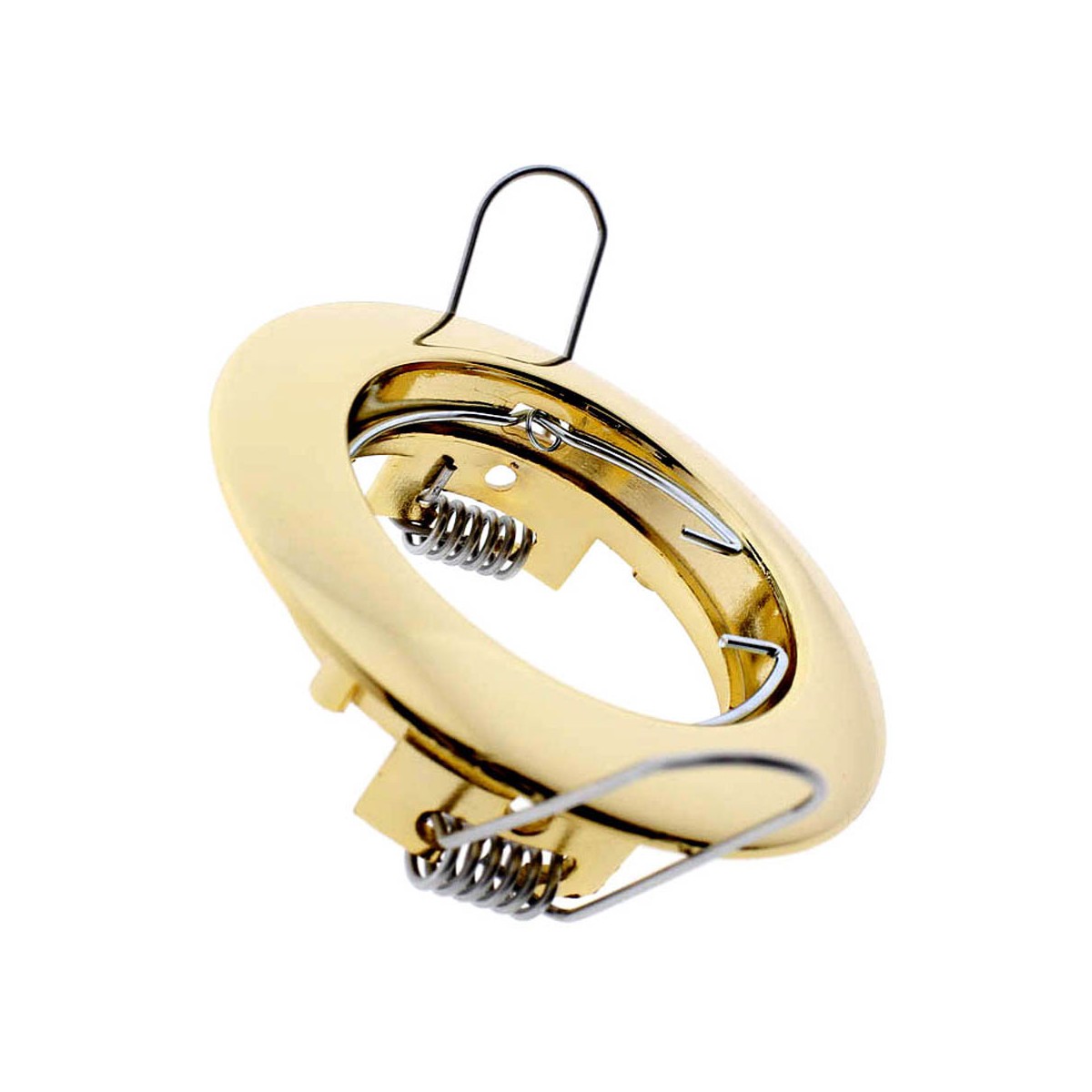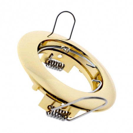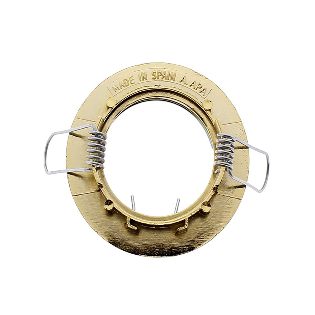 Round fixed recessed spotlight in gold colour by Ángel Aparicio Spain. The range of gold recessed lights is a TOP SELLER due to its demand for the realization of contract lighting projects. It is made of 100% Spanish high quality materials, available in other shades of gold such as matt gold or old gold. The recessed spotlight offers an elegant gold finish in a circular shape, easy to install and integrate into the ceiling. Once installed, you don't have to remove it again if you want to replace the bulb as it can be done from the front. Gold fixed recessed light available with GU10, with G5.3 or without lamp holder.