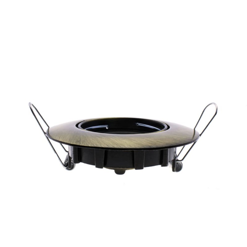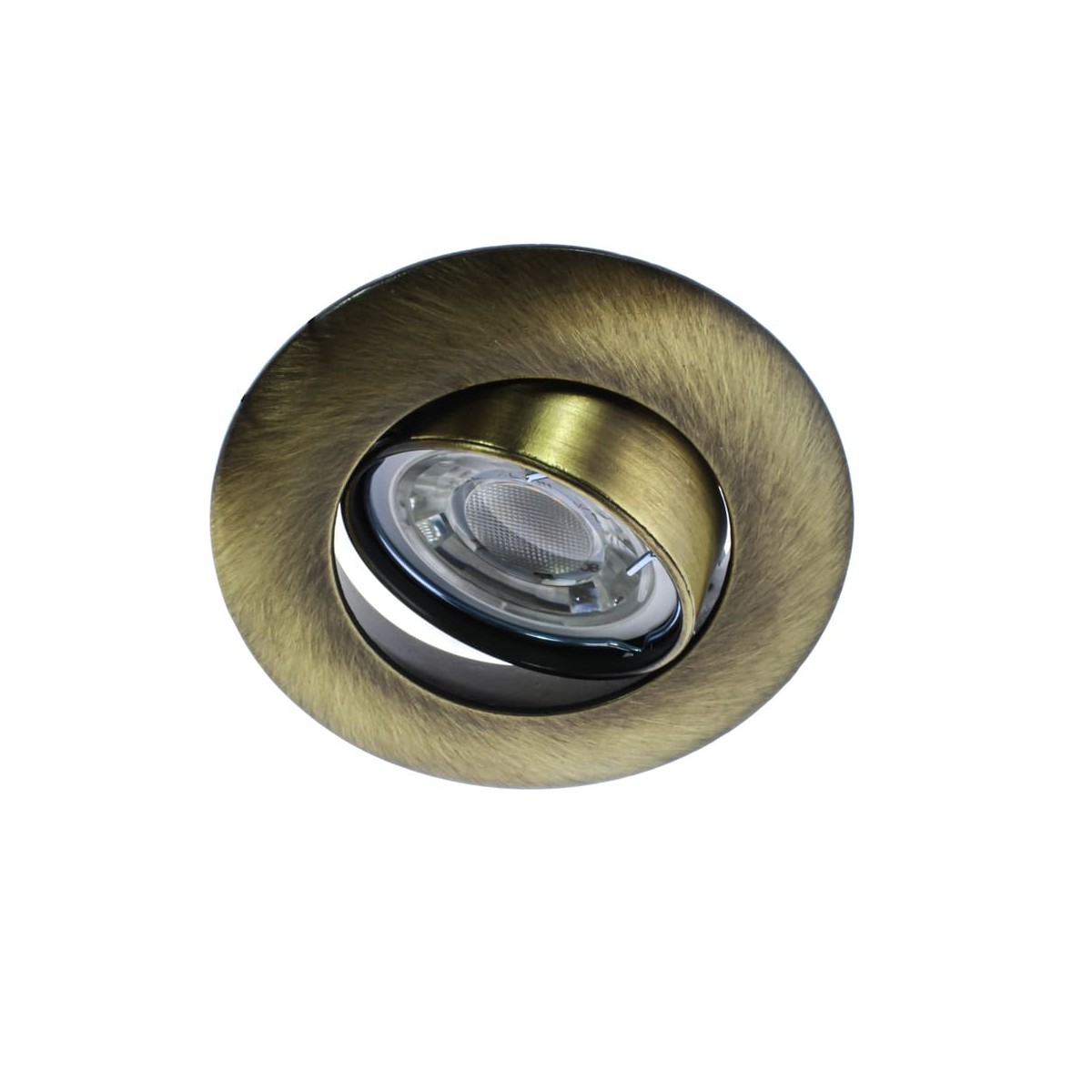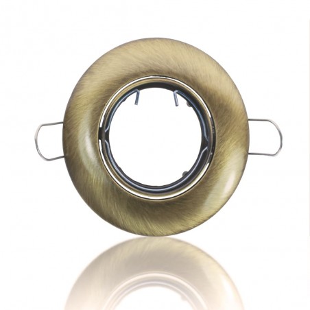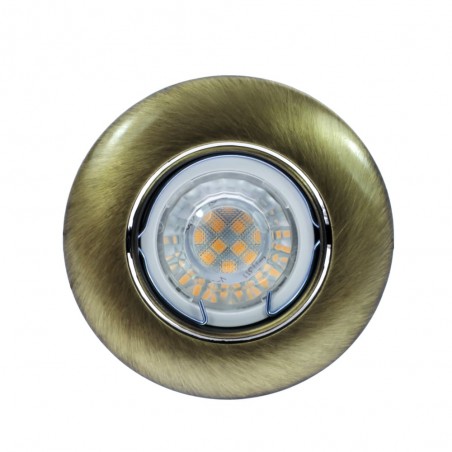 Old gold round movable recessed spotlight. Recessed light fitting designed to be installed in the ceiling, providing an optimal point of light in rooms such as hallways, corridors or bedrooms. The recessed light is designed with a tilting angle of 30º, allowing the light to be directed directly downwards or to one side, adapting to the lighting needs of the project. Once installed in the ceiling, it is not necessary to remove the fixture to replace the bulb. High quality recessed spotlight with 100% Spanish manufacturing process and materials for maximum durability of the product. You can purchase the recessed light individually or combined with a GU10 or G3.5 lamp holder.