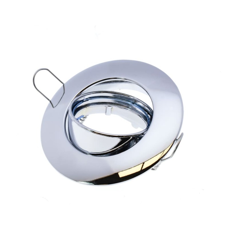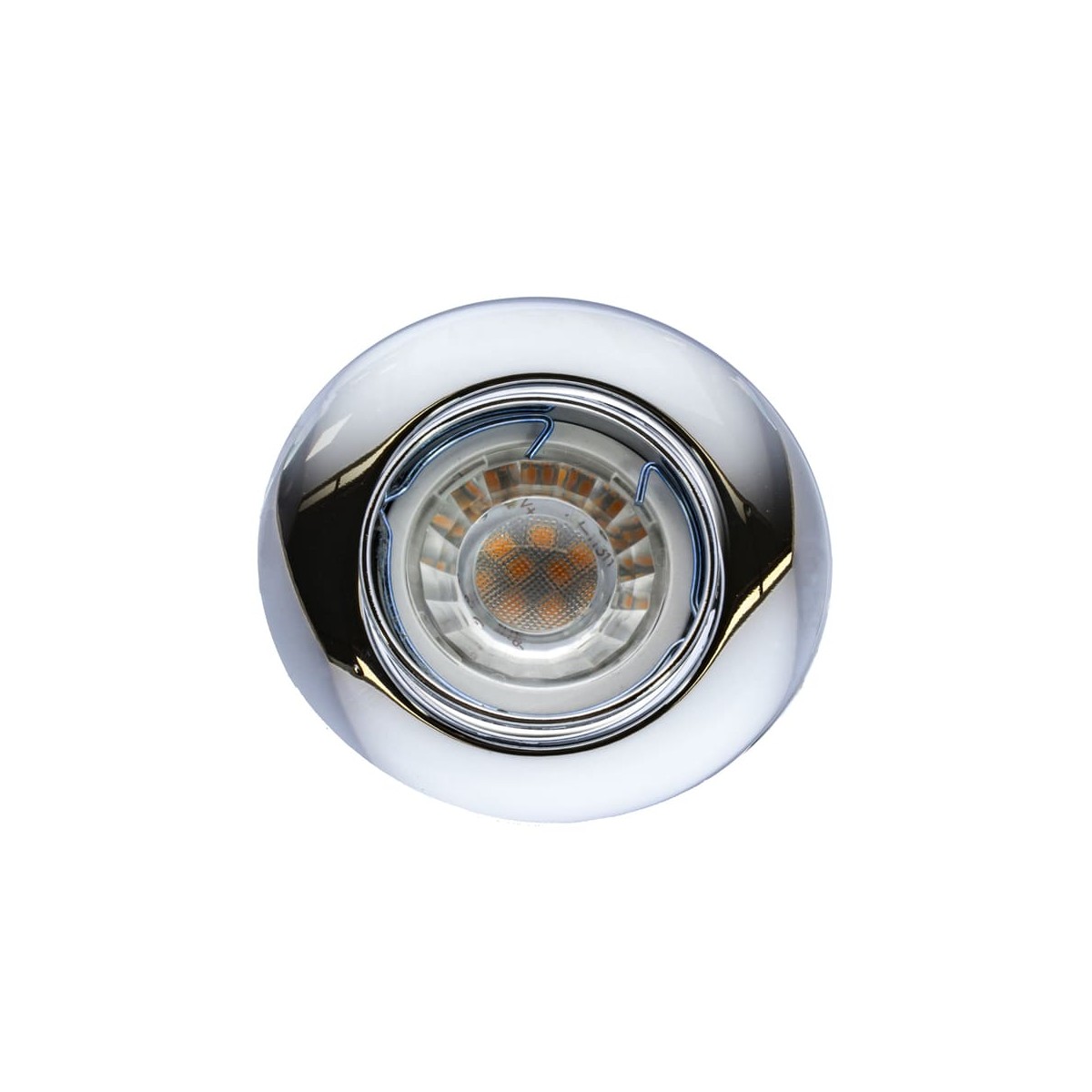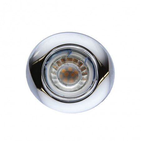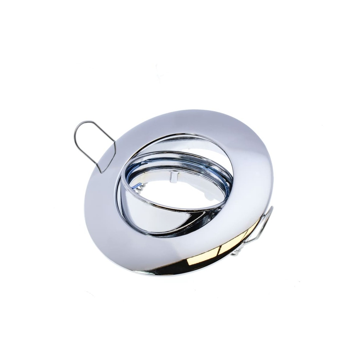 Round tilting recessed spotlights in chrome finish. Its circular design allows for easy integration into the ceiling, making it ideal for use as lighting in any interior room. This recessed light stands out for allowing the light point to be oriented, offering the possibility of moving it at an angle of 30º to adapt to the needs of the moment or the project. Its chrome finish combines perfectly in modern style rooms and places with metallic decorative elements such as taps. High quality and 10 years guarantee, manufactured with chrome finish zamak injection. Easy installation in the ceiling and front replacement bulb.