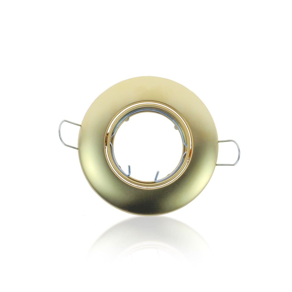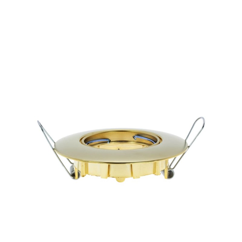 Matt gold movable recessed spotlight that can be easily integrated into the ceiling. This recessed ceiling light is one of the most popular in its range for interior lighting projects. The elegant matt gold finish of its zamak structure gives a different touch when it comes to lighting any room. With a simple design, the recessed light fitting has the added bonus of being movable. Thus, once installed in the ceiling, you can change the position of the light point with an angle of 30º to direct the lighting. High quality and durable, Made in Spain using injection moulded zamak with a matt gold finish. Front replacement bulb.