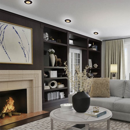 Halo recessed LED downlight. Downlight with 6 lighting modes designed for contract interior lighting projects. To change the lighting mode you have to switch the light on and off from the wall switch. The sequence is: neutral light, cold light, warm light, warm-cold light, cold-warm light, cold-warm light and night light.