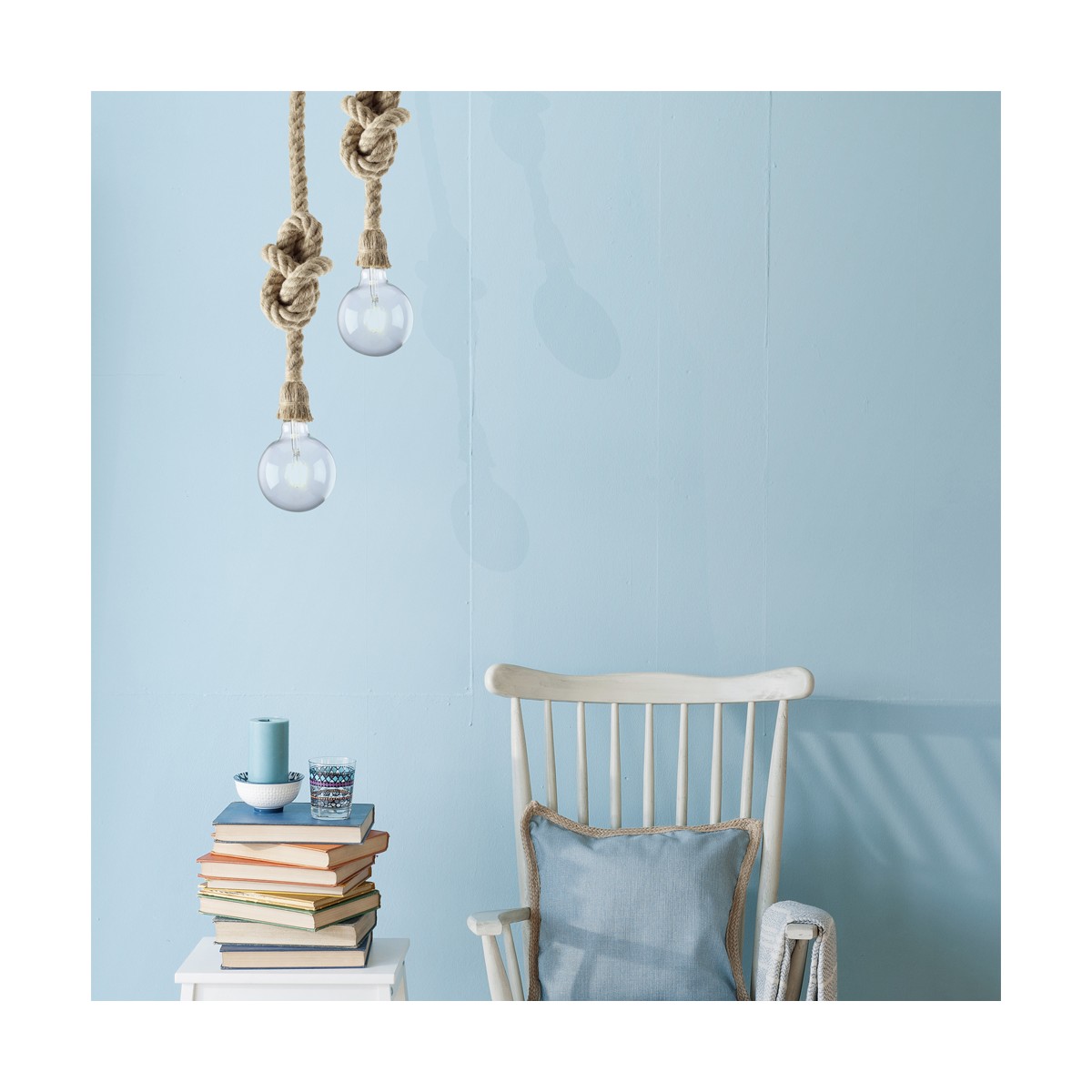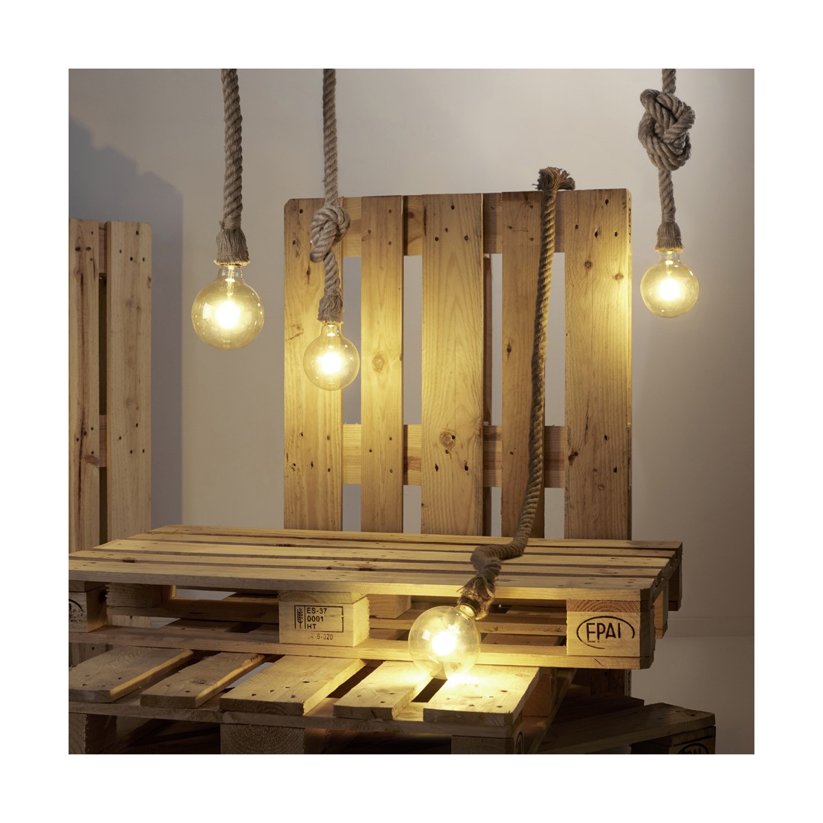 Pendant lamp holder with a singular design as a knotted rope. This type of lamp is a simple way to light any room adding something different and attractive to the decoration. It can be adjusted to different height levels. It can make a perfect match with a vintage LED bulb if you are looking for a rustic mood. *Bulb not included.