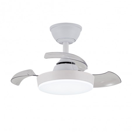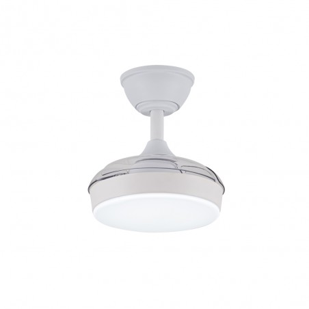 Small fan for children's rooms. Silent fan with folding blades ideal for use in children's rooms. It has six rotation speeds and emits very little noise during operation thanks to its silent DC motor. It regulates the light intensity and colour tone to achieve the perfect lighting. Remote control included. Hornet