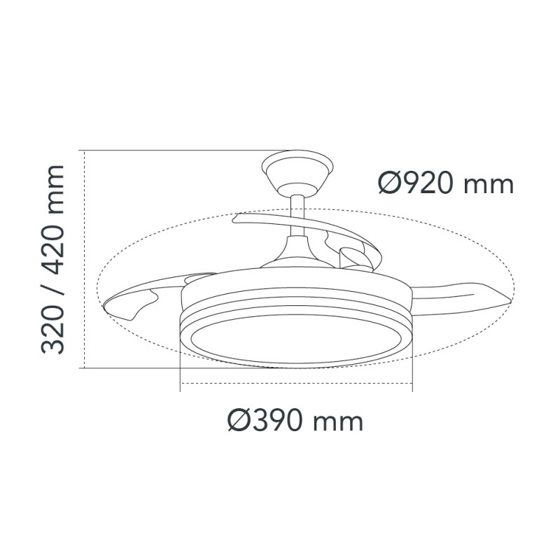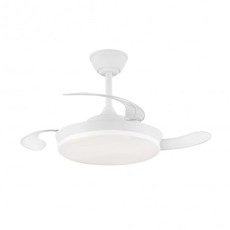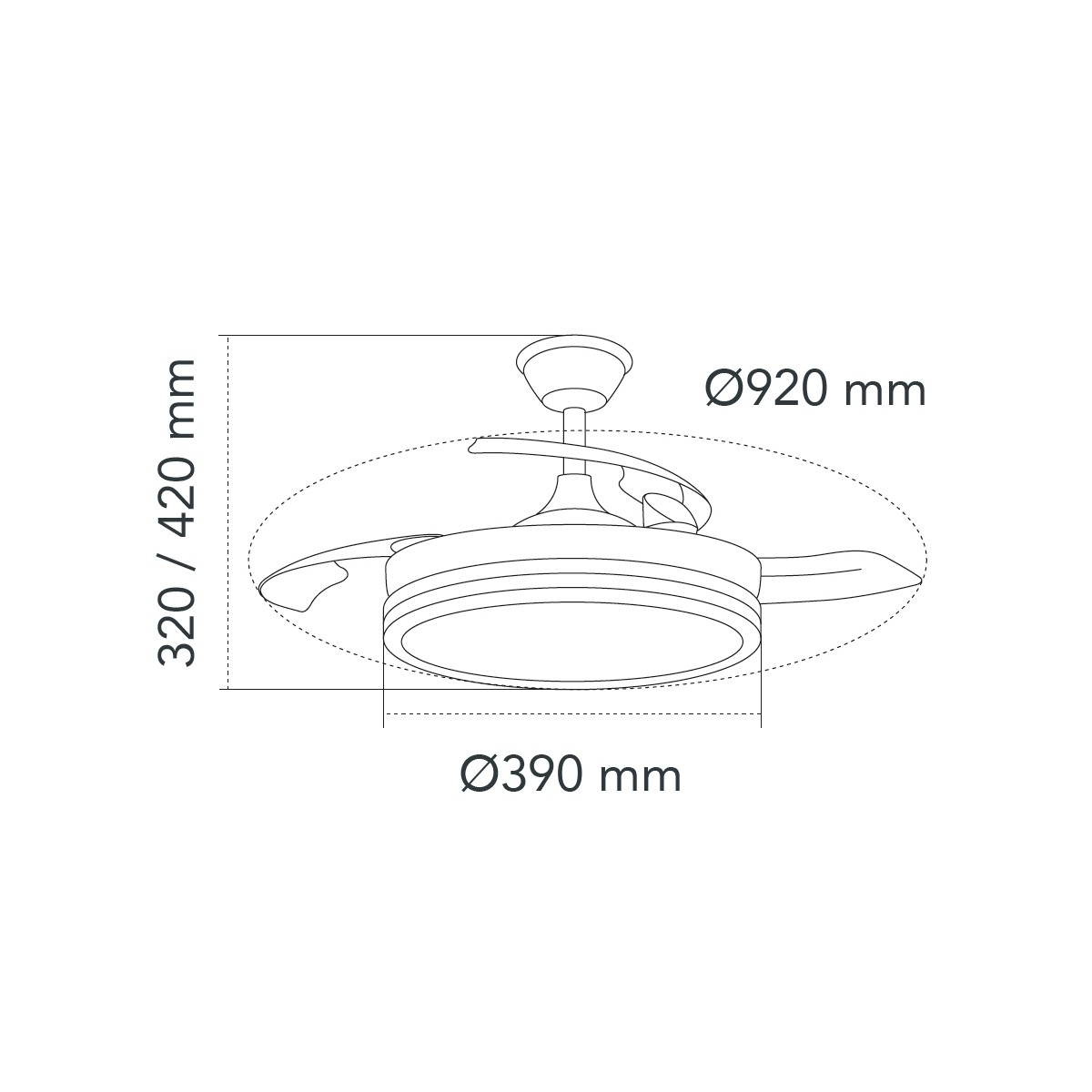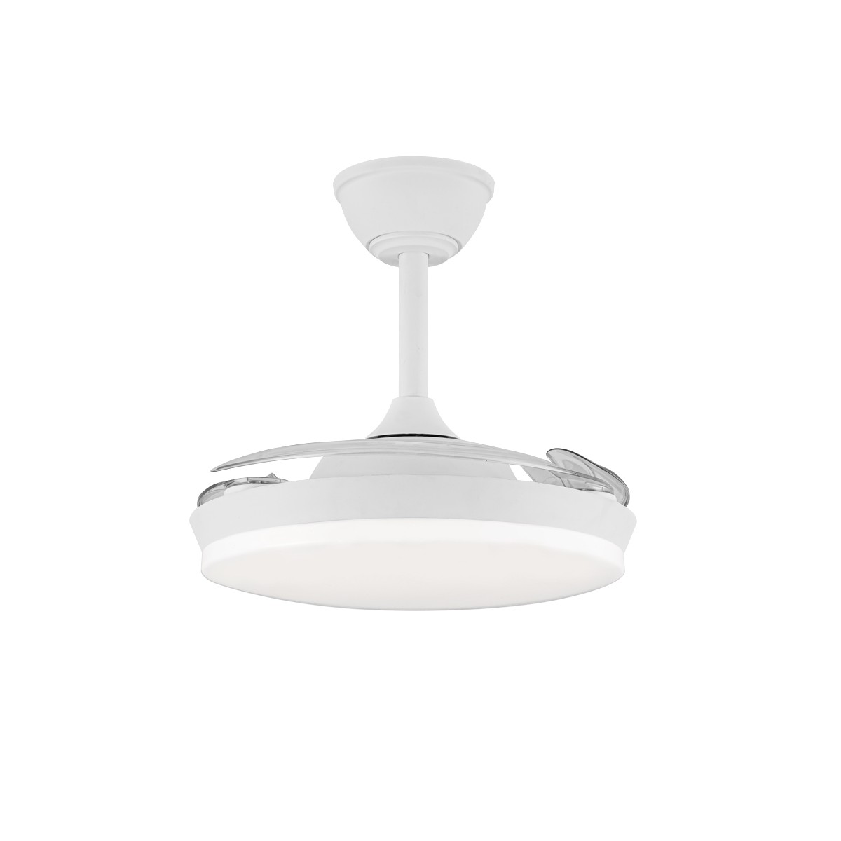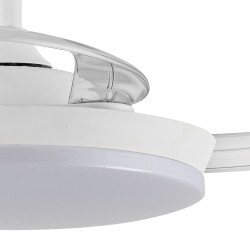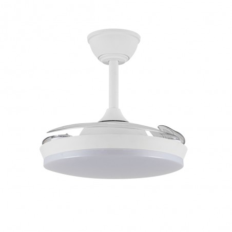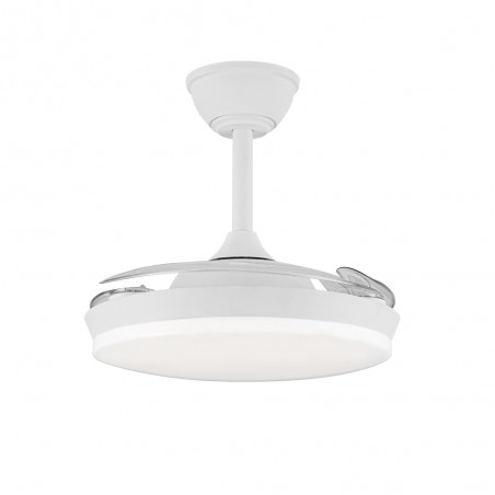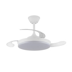 Milky S Eco silent fan with retractable blades. Silent ceiling fan with retractable blades designed for small rooms such as bedrooms. You can easily control the speed and lighting with the remote control. Energy-saving LED lighting adjustable in intensity and colour temperature. Reverse function, timer, breeze mode and power-on memory.
