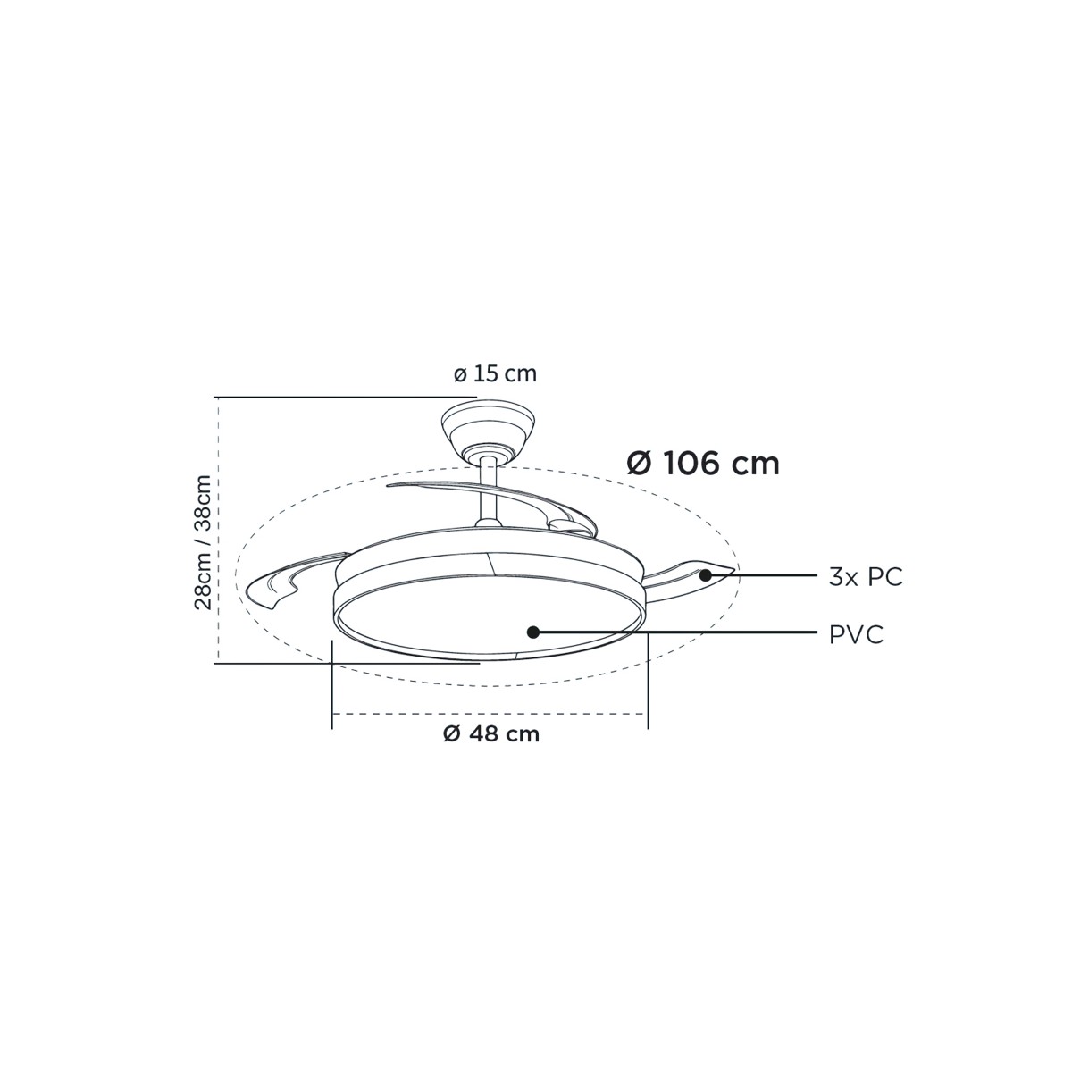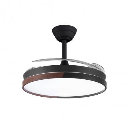 Ecoro Black silent fan for bedrooms. Black fan with retractable blades designed especially for bedrooms and living rooms. Its six-speed DC motor emits minimal noise when the fan is in operation. It has low-energy LED lighting and can be easily adjusted with the remote control. Reverse winter/summer function, timer and colour memory. Silent fan with retractable blades.