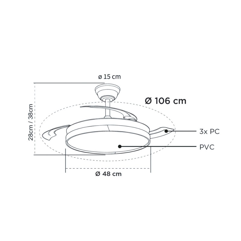 Ecoro Black 48W 5040Lm CCT Dim retractable blade LED fan