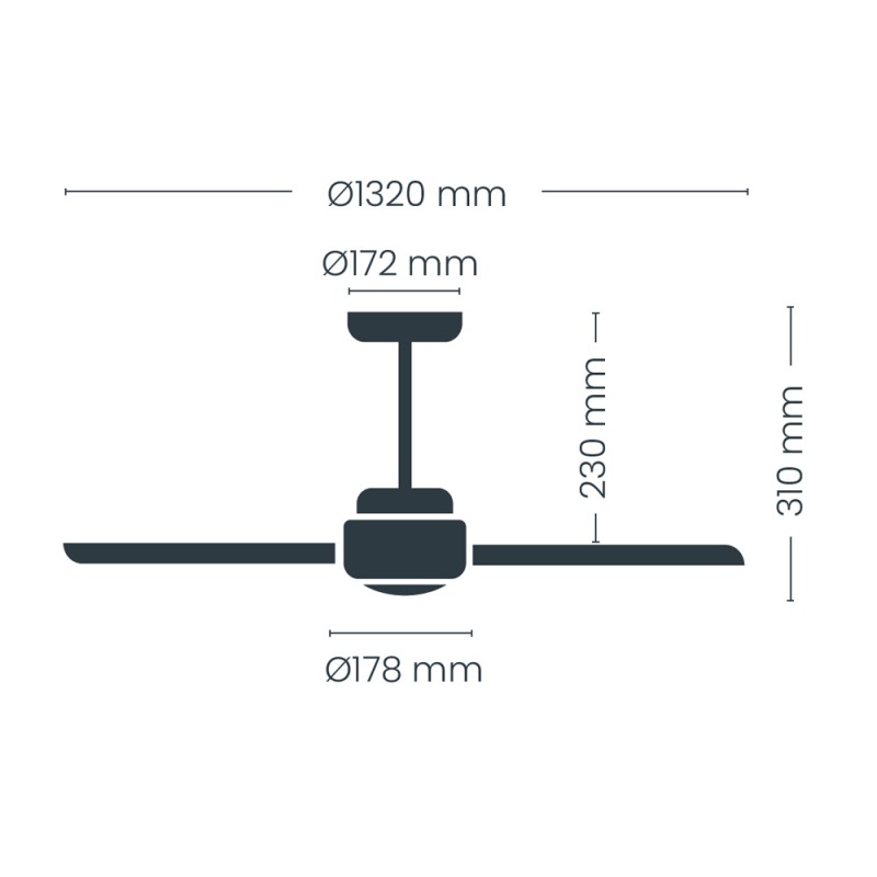 Ceiling fan Nine Eco Black with LED light for rooms with low ceilings. Nordic-style design with black metal frame and three natural wood blades. Use the remote control to adjust the speed and lighting. Quiet DC motor with six speed settings and winter-summer reverse function.