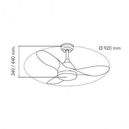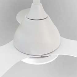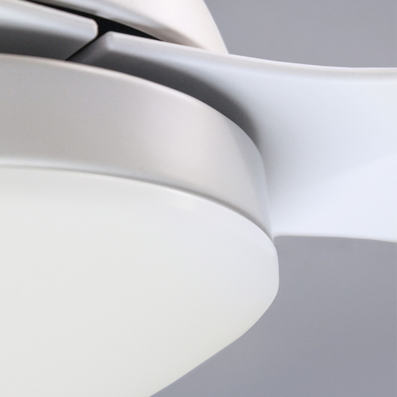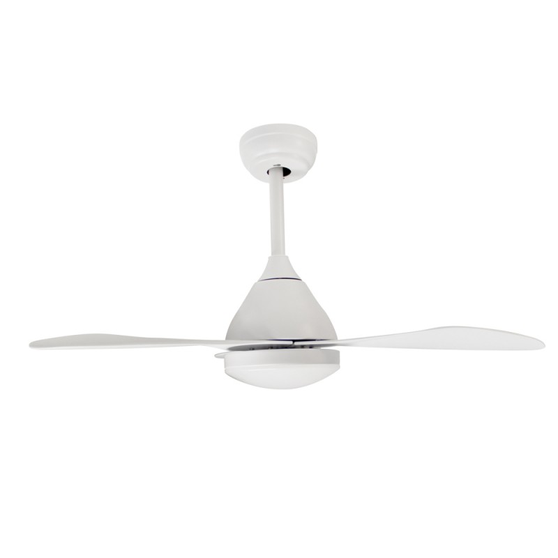 Silent ceiling fan for small rooms. Integrated LED lighting adjustable in intensity and colour temperature. With silent DC motor operates at 6 different speeds and includes 1-2-4h timer and summer-winter function. Switch-on memory with the last lighting configuration. Includes remote control to control fan and lighting. Modern design with three ABS blades all in white.