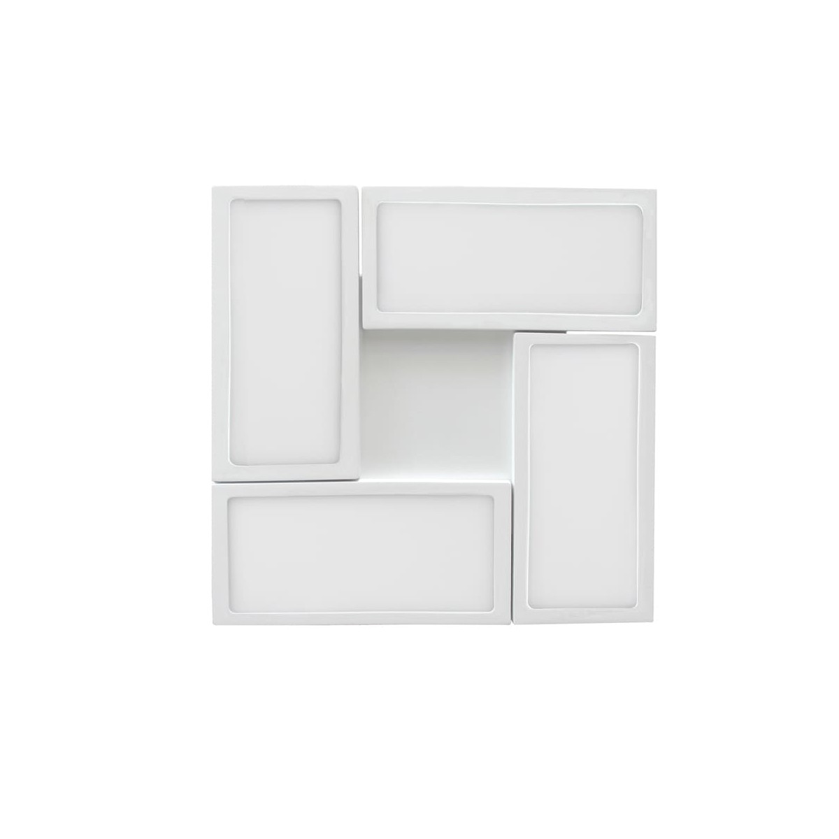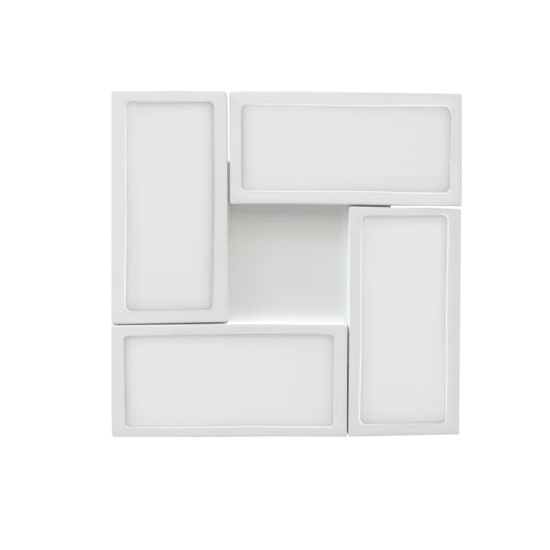 Contemporary LED Ceiling Light with a very attractive shape made up four rectangles. Made of die casting aluminium it has a white finish, 72W, 4680 lumens and warm light (3000K). This model is the perfect choice if you want a decorative lighting source that provides a warm and cosy illumination. *Driver included.