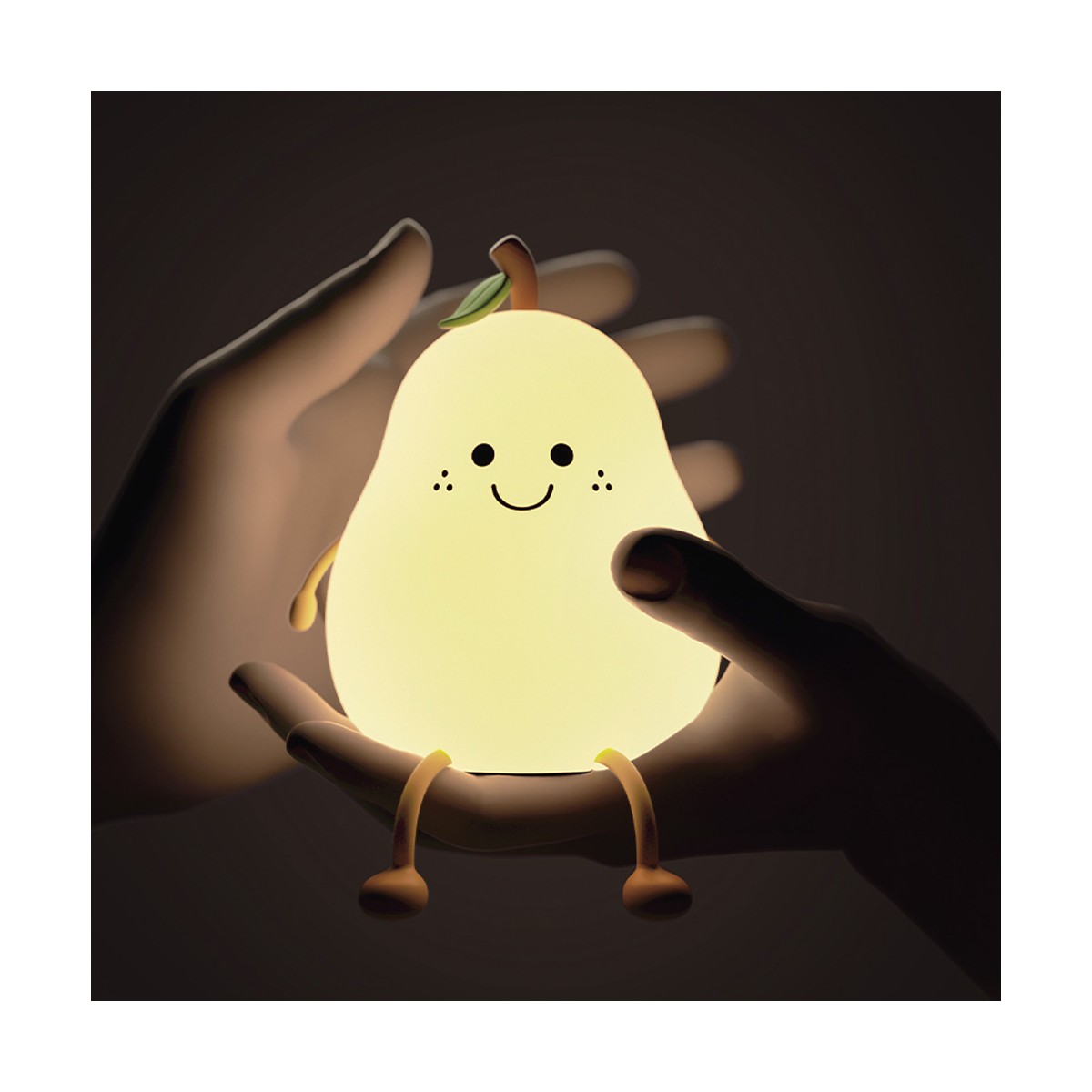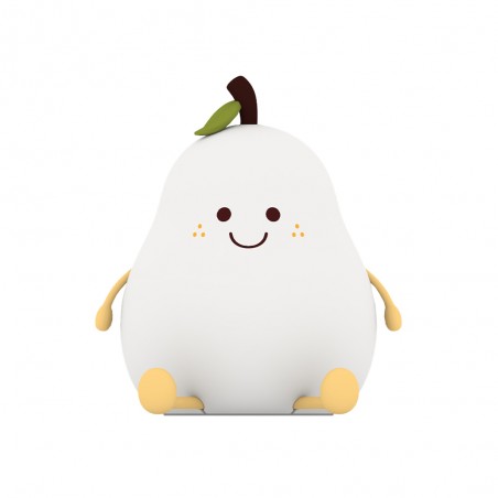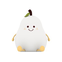 Silicone children's lamp with RGB LED light. Lamp in the shape of a cute smiling pear, ideal for your child not to be afraid at night and to sleep peacefully. It is made of silicone so that it can be handled safely by pressing it to turn it off, on or change the colour of the light. On the bottom there is a switch to set the desired lighting mode (RGB light/off/night light). The lamp has a rechargeable battery via USB-C port. Timer 30s-60s.