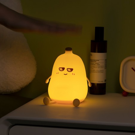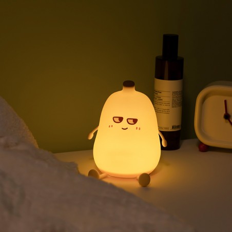 Merlin LED children's nightlight lamp. Lamp in the shape of a friendly yellow banana designed so that your son/daughter won't be afraid at night and will sleep peacefully. Press and hold the switch under the lamp to turn the light on and off. Once the light is on, press briefly to adjust the intensity of the light. You can activate a timer so that the light turns off after half an hour or an hour. The lamp has a rechargeable battery for easy transport and use anywhere in the house.