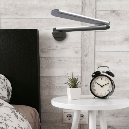 LED Wall Light Grey Mel with touch switch on/off. Natural light of 6W, with three intensities. Includes a USB port. The body is articulated and connected to the current as a desk lamp.