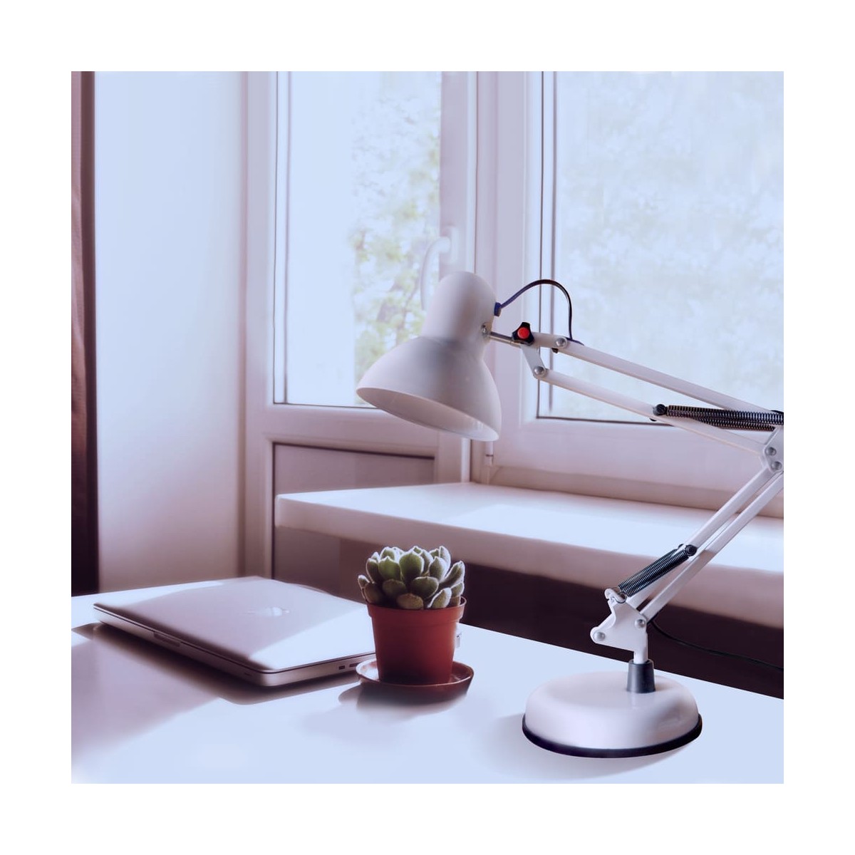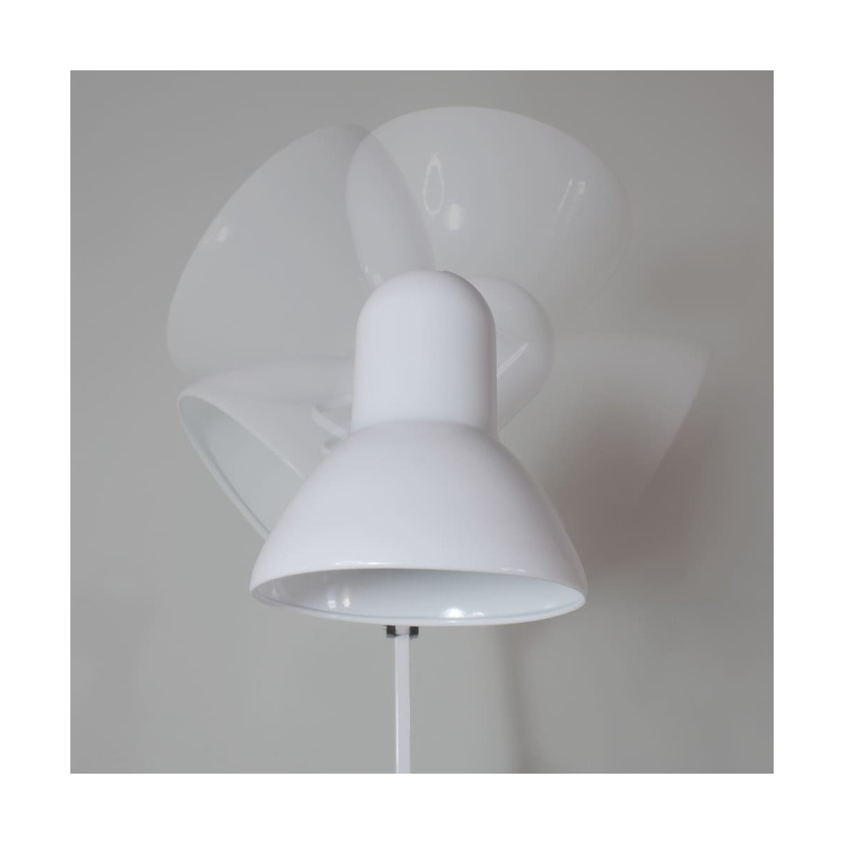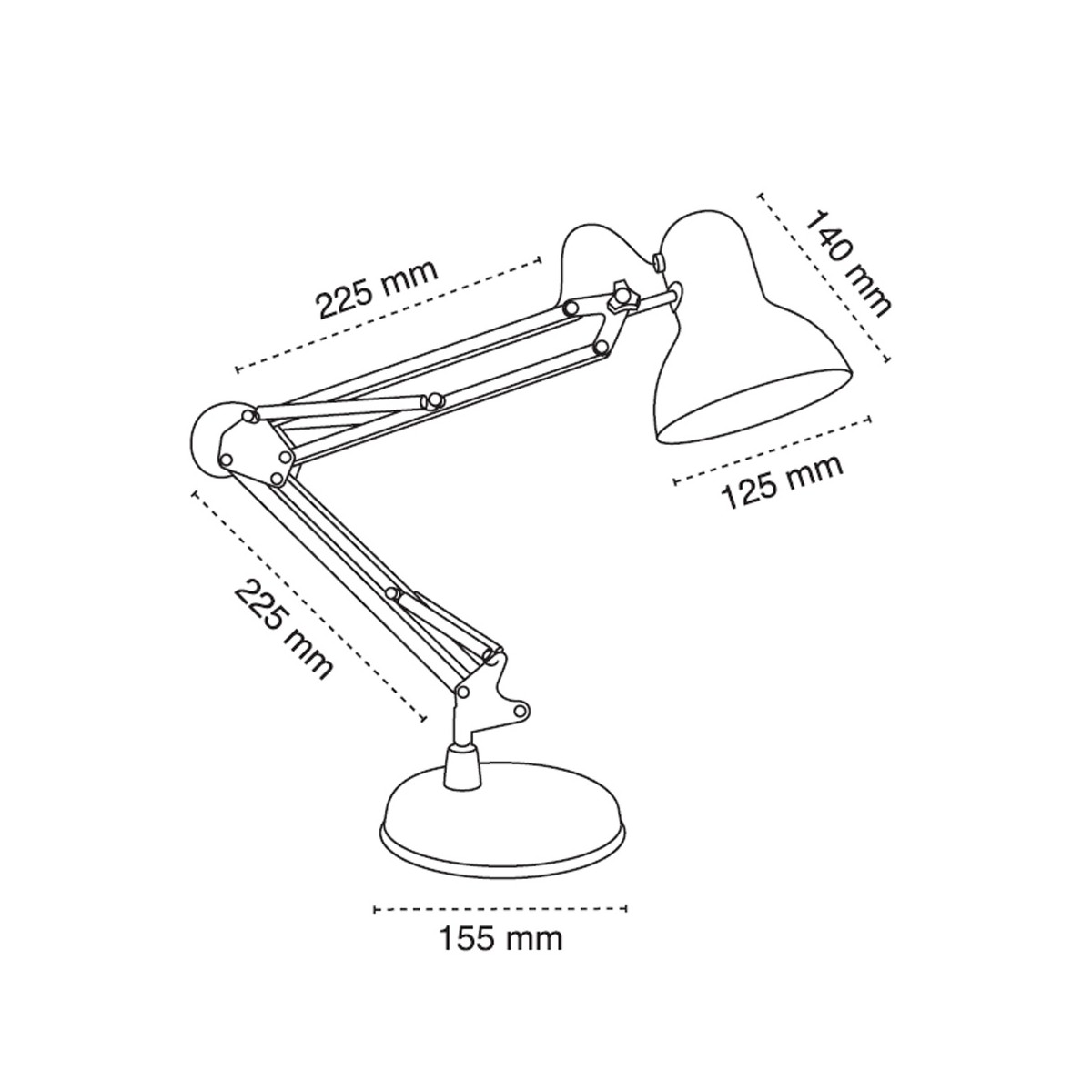 Articulated white lacquered metal desk lamp with round base. Suitable for E27 bulbs. The lamp has a 110cm cable and is articulated both the body and the head allowing to direct the light to the desired point.