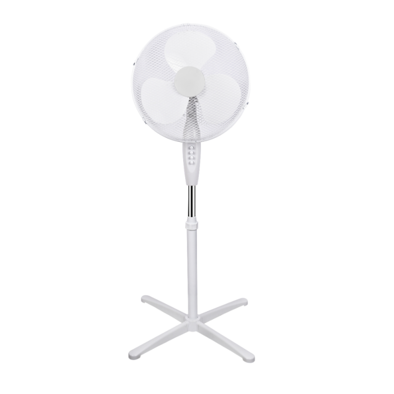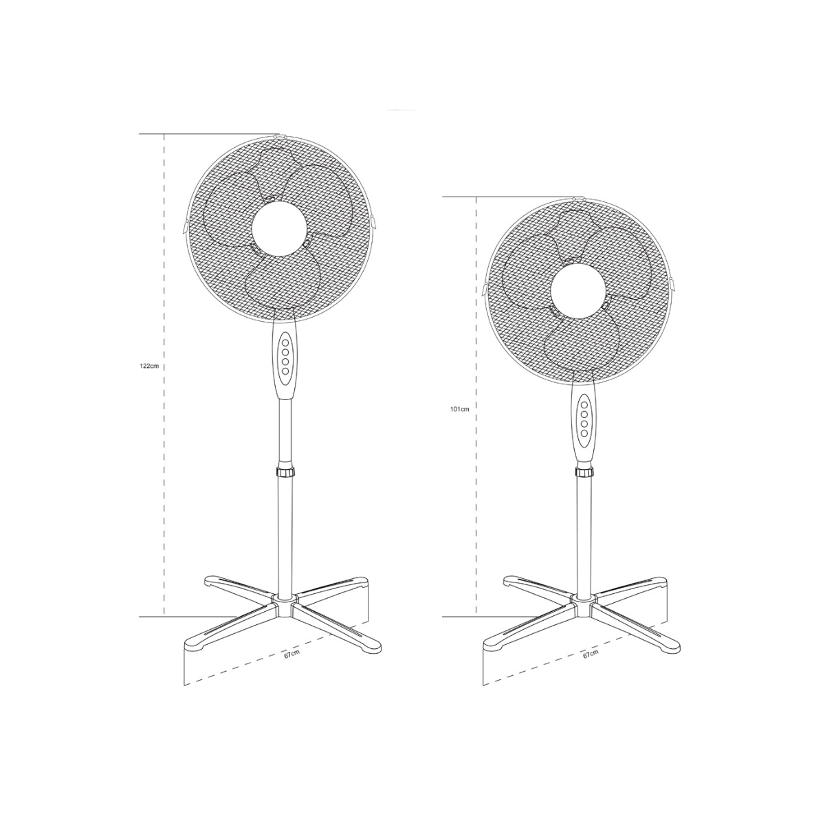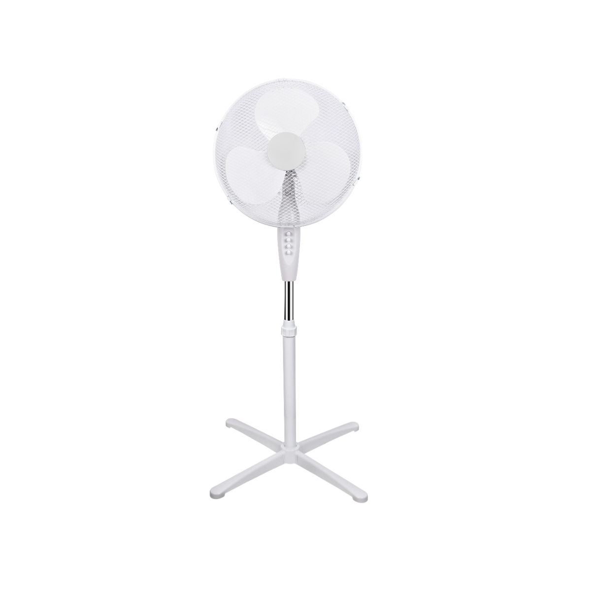 Aura standing fan. Adjustable structure and oscillating head with a secure protective grille. Use the buttons to select the air speed and oscillation mode (75º).