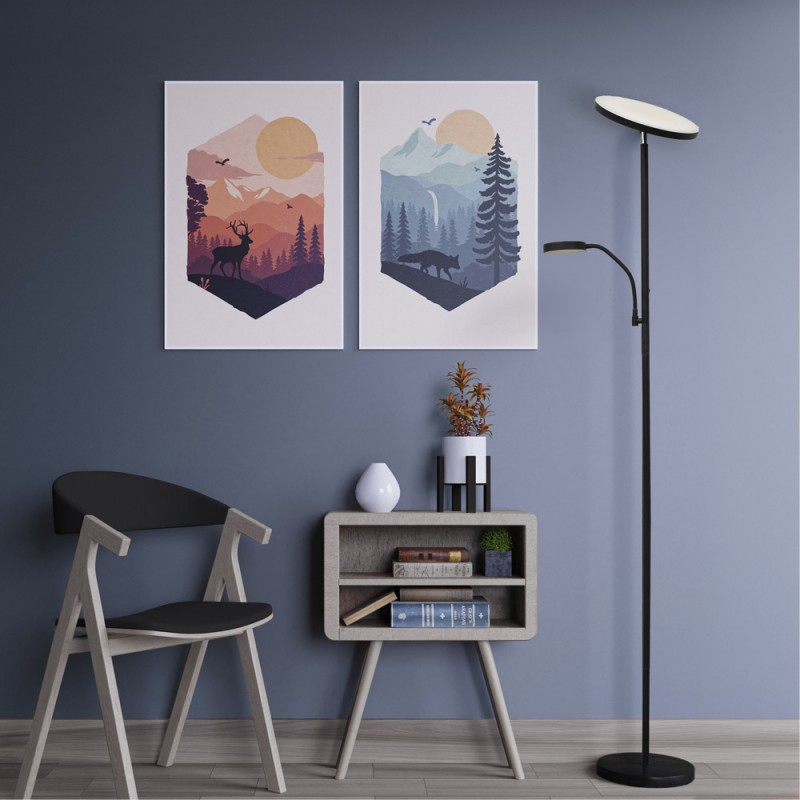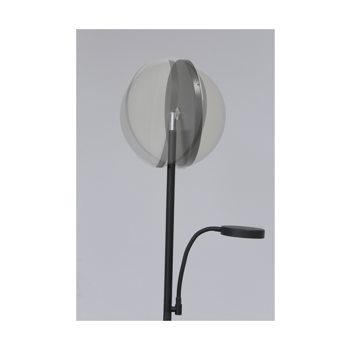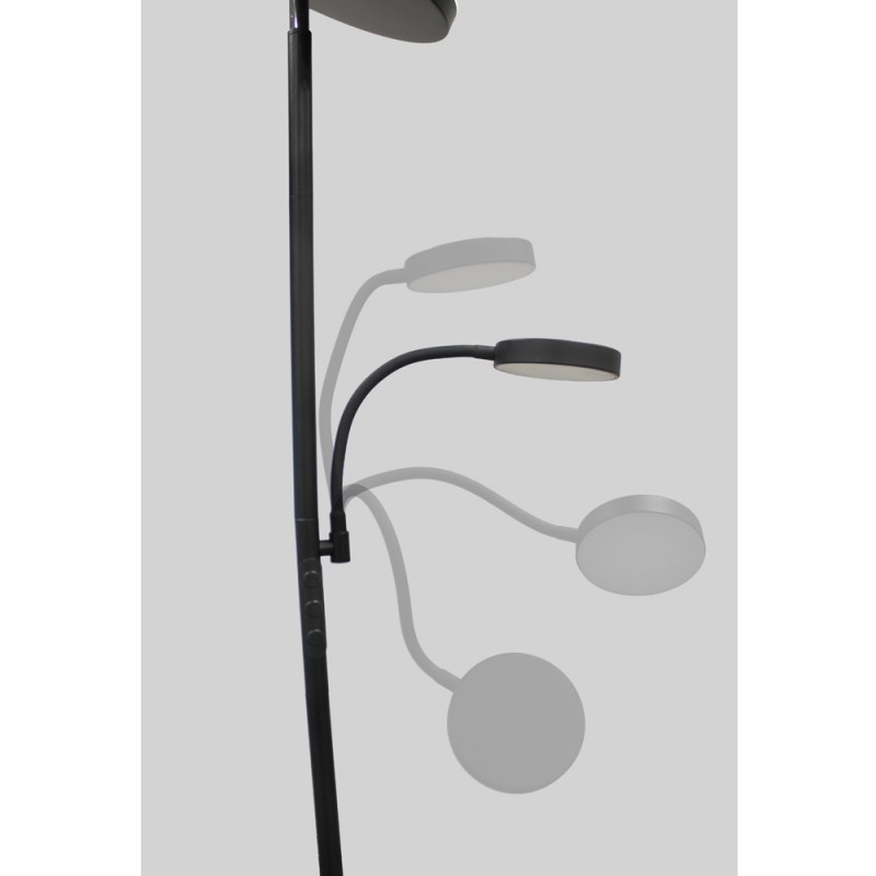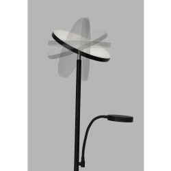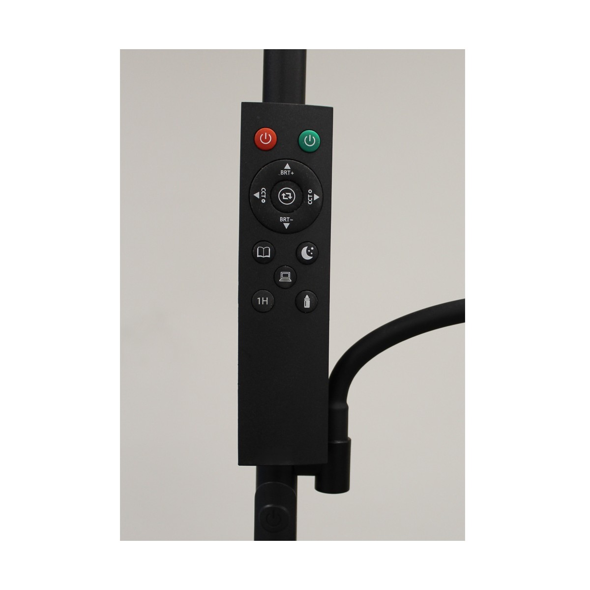 Denzel floor lamp with LED reading arm. Very practical floor lamp for use both as ambient lighting and as reading or auxiliary lighting. You can regulate the light intensity, colour temperature and select pre-set light modes. Includes remote control. Black floor lamp with integrated warm white LED lighting (30W+6W).