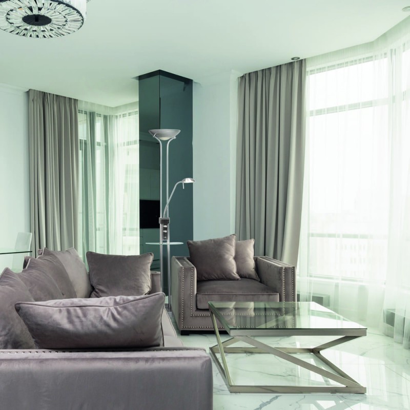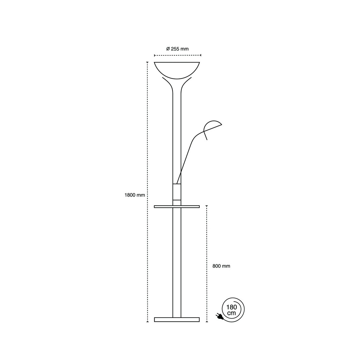 Alari LED Floor Lamp Nickel USB. Classic style LED floor lamp features an uplighter detailing and a flexible reading lamp which can be operated independently. Both lamps work with dimmable LED lights (18W+6W) in warm and neutral colours respectively. It also has a small glass shelf with a USB port to charge mobile phones. It's a timeless way to add character to your home without forgetting the usability of the latest technology.