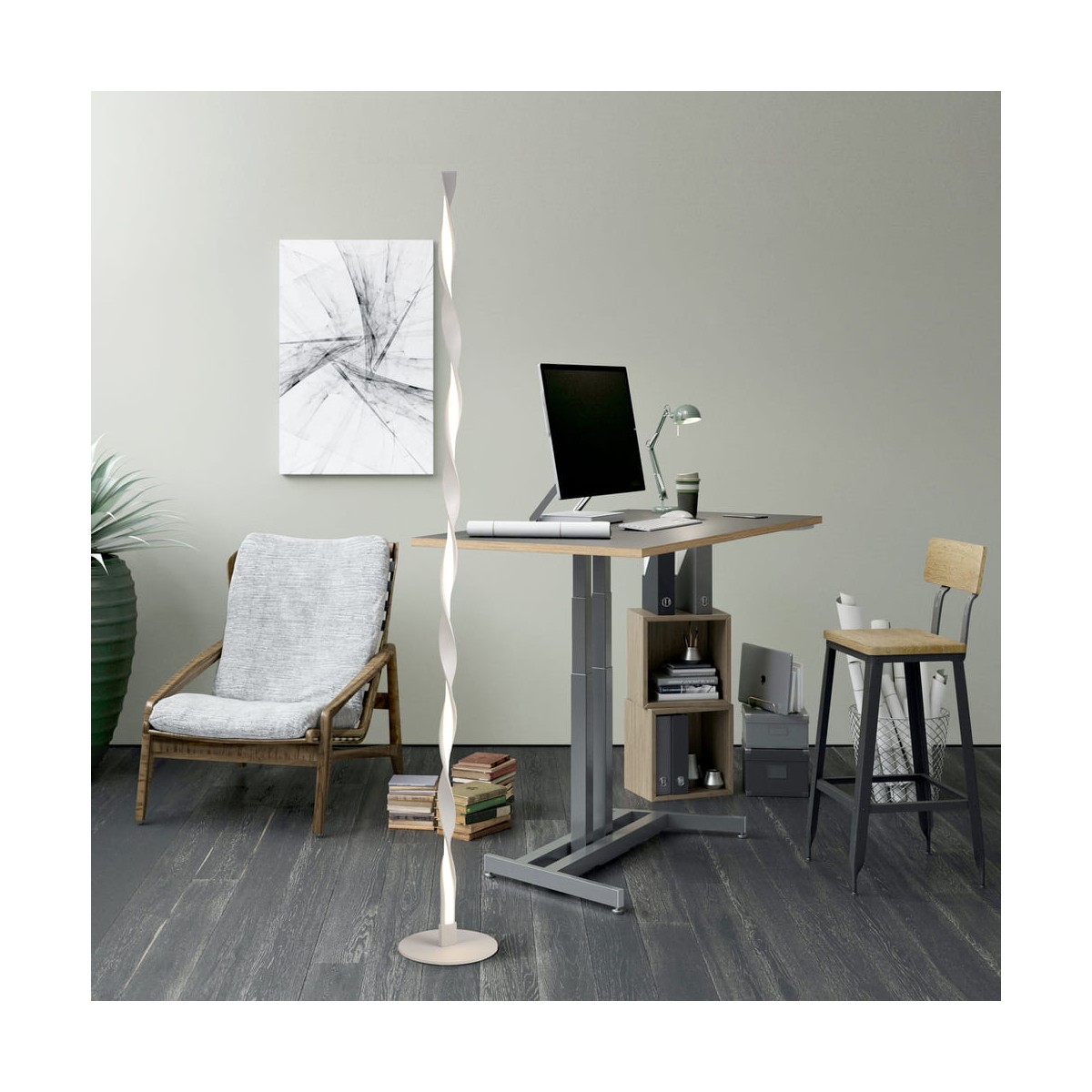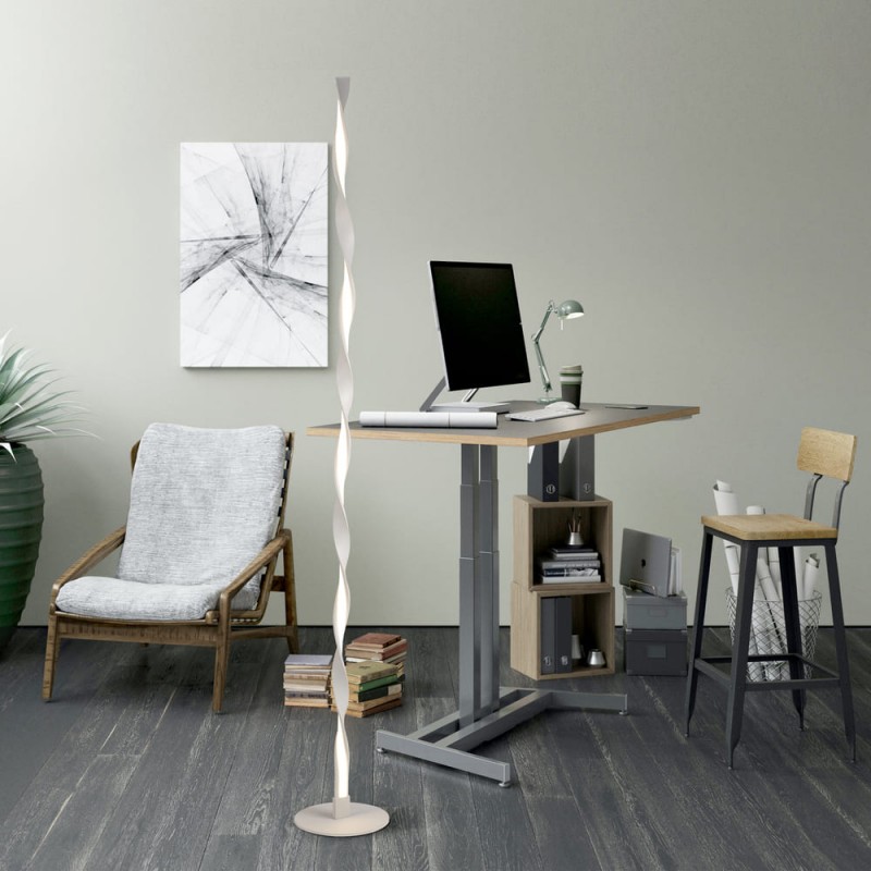 Decorative LED floor lamp with 24W power and warm yellow light, perfect to create a cosy ambient light. White lacquered aluminium structure and opal diffuser.