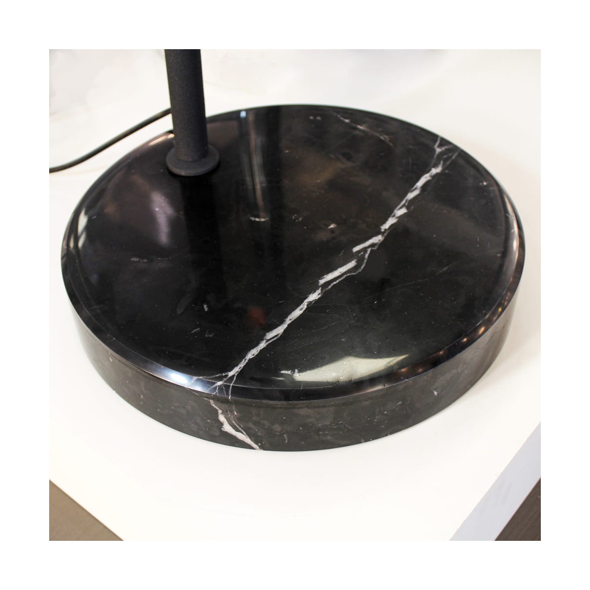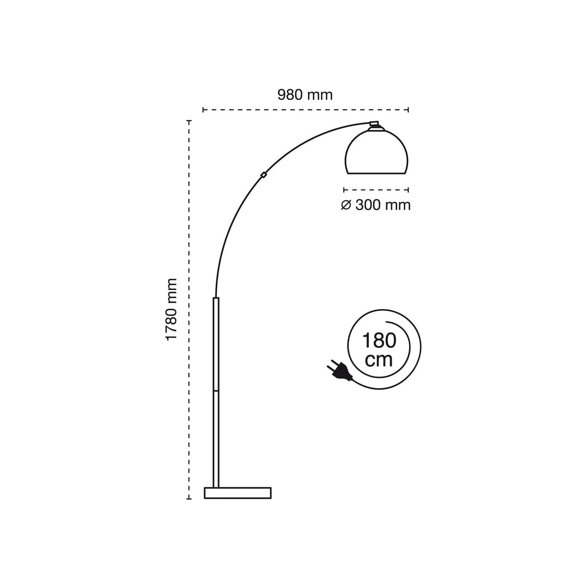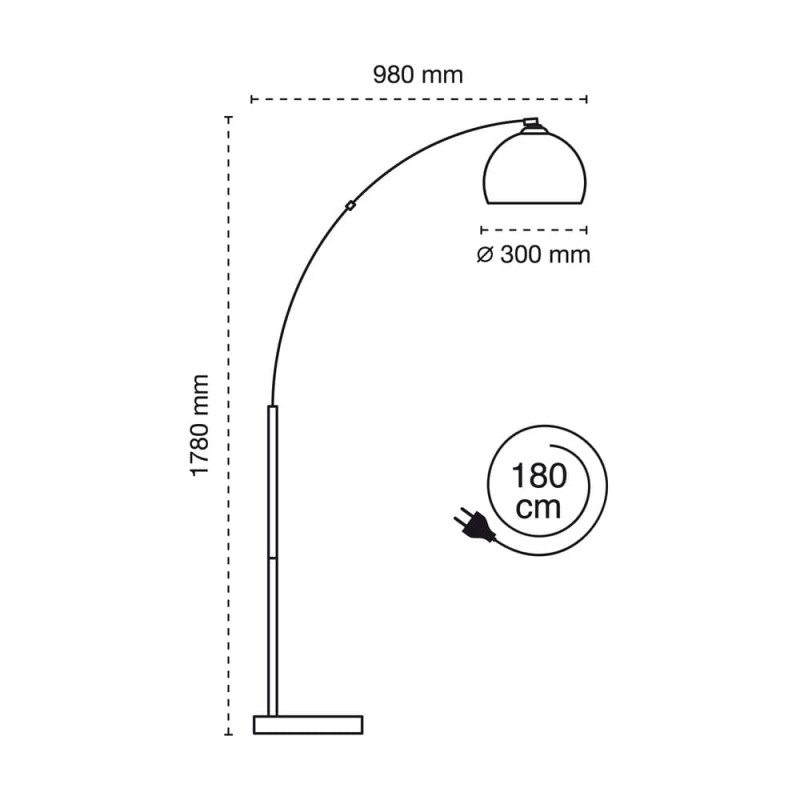 Decorative floor lamp with one light, for E27 bulb (not included). Easy to assemble with metal lampshade and marble effect base.