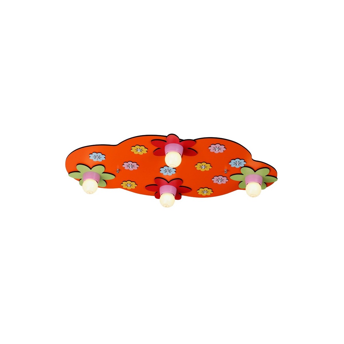 Orange Ceiling Lamp with flowers. Beautiful shape structure made of plywood and plastic. Works with 4 E27 bulbs (not included) very easy to change them. Perfect for nursery lighting, kids room lighting.