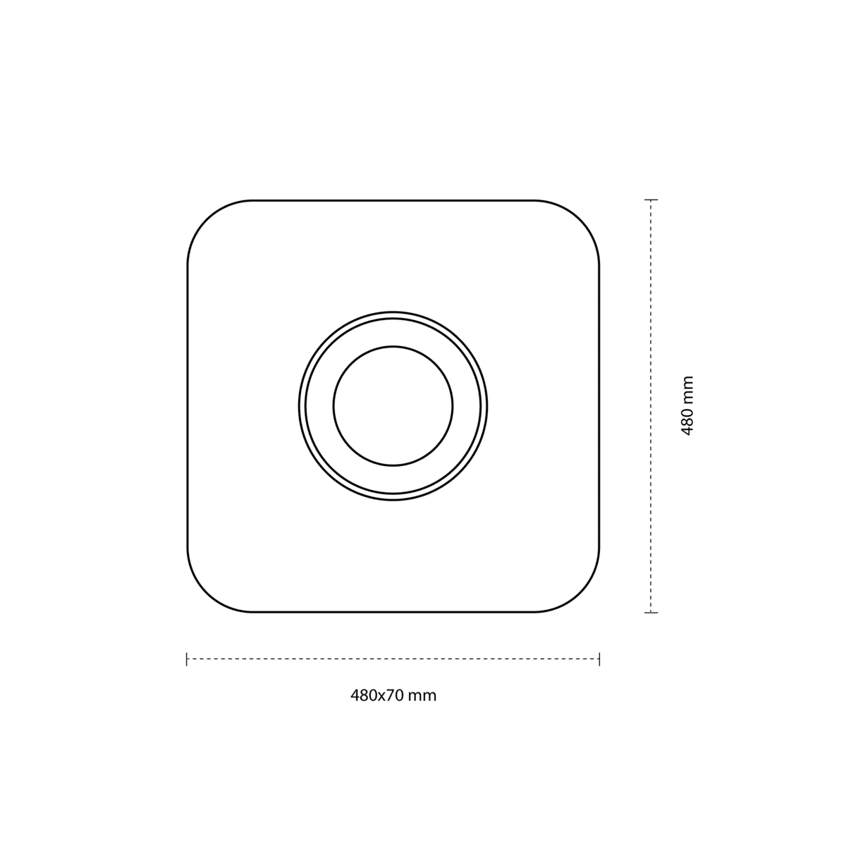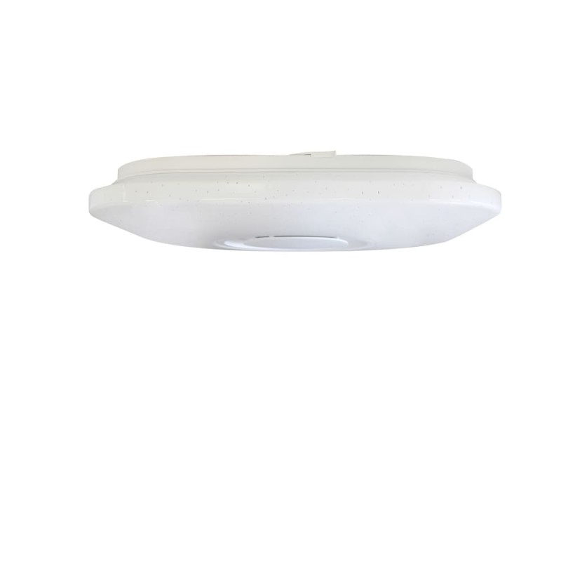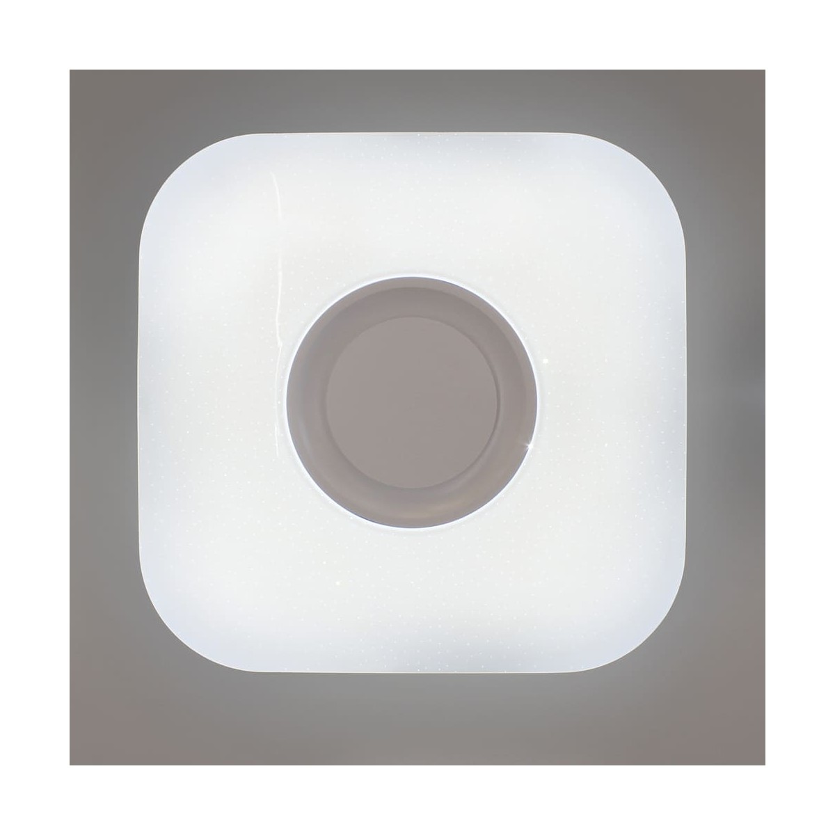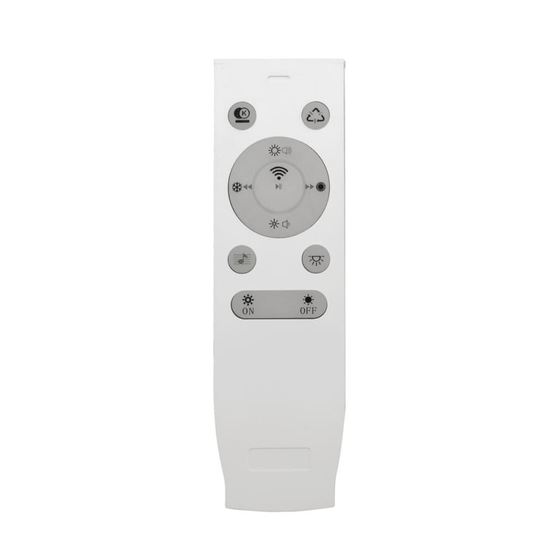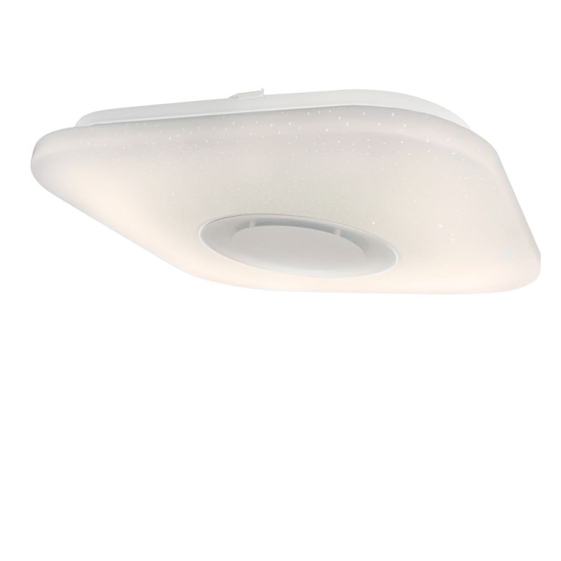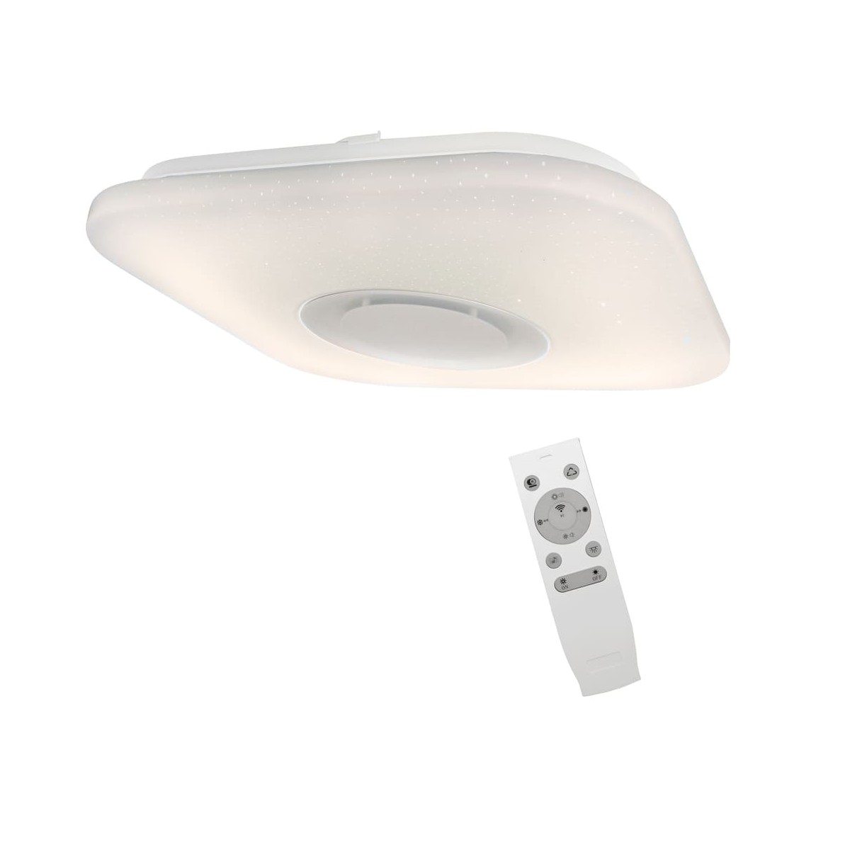 Square ceiling light with RGB LED lighting and speaker. Very practical ceiling light for lighting bedrooms and living rooms. Adjustable light intensity and color temperature (3000-6500K) with a wide RGB color gamut. It is controlled by a remote control which can also be used with a smartphone via an app. It has a built-in speaker to play music. Diffuser in white PVC.