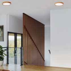 Surface mounted ceiling light with three colour temperatures. Ultra slim circular LED ceiling light perfect for functional lighting of indoor spaces. It has three colour temperatures (3000-4000-6500K)* and three light intensities (10-50-100%)**. Easy installation directly into the ceiling and ultra slim design (25mm). Wood aluminium frame and acrylic diffuser.