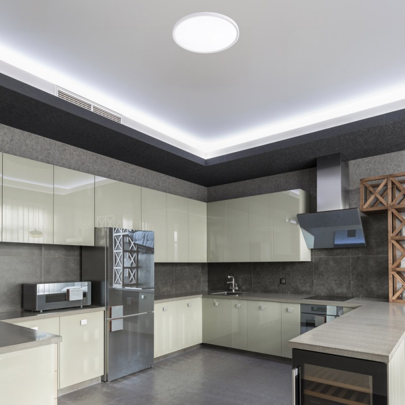 Surface mounted ceiling light with three colour temperatures. Ultra slim circular LED ceiling light perfect for functional lighting of indoor spaces. It has three colour temperatures (3000-4000-6500K)* and three light intensities (10-50-100%)**. Easy installation directly into the ceiling and ultra slim design (25mm). White aluminium frame and acrylic diffuser.