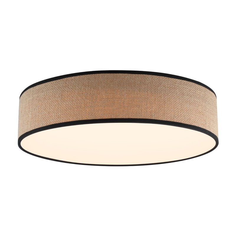 LED ceiling flush light with three colour temperatures*. Boho chic ceiling flush light for lighting living rooms and bedrooms. Circular design 60 centimetres in diameter with brown lampshade and pmma diffuser. Its integrated LED lighting is projected in a diffuse way providing an optimal light in the room.