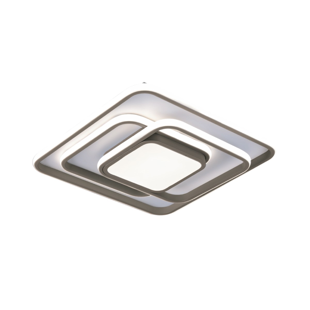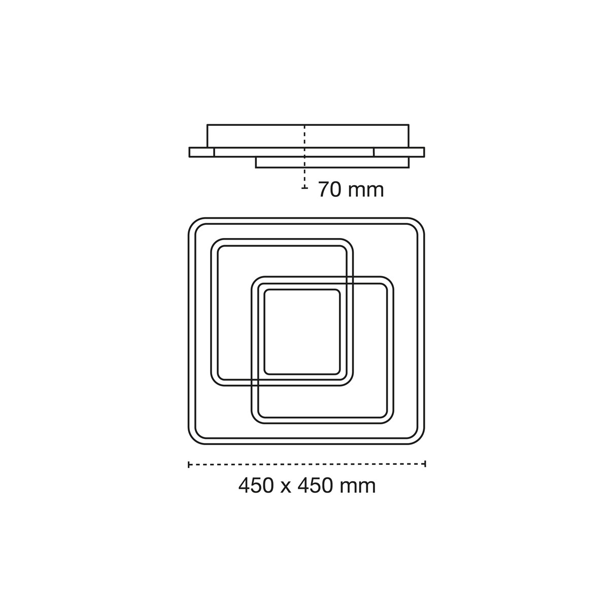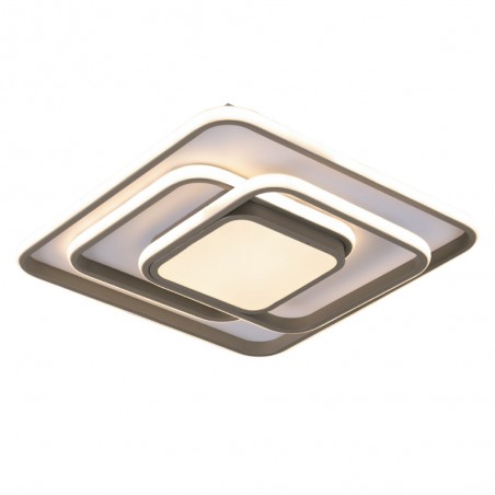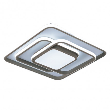 Square decorative LED ceiling light with integrated three-temperature LED lighting. The structure of the ceiling light allows different lighting atmospheres to be created with its lighting strips. With the control included, in addition to adjusting the light tone, the intensity can be regulated and switched on and off. It also has a night lighting mode and a memory function to recover the last lighting set.