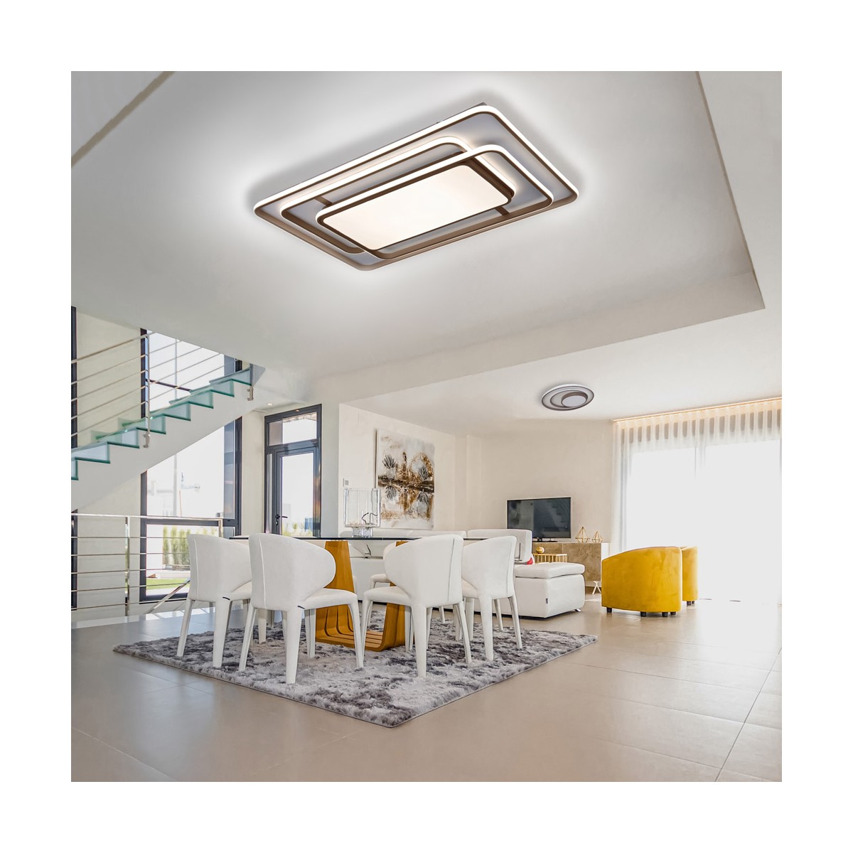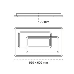 Decorative LED ceiling light with integrated three-temperature LED lighting. The structure of the ceiling light allows different lighting atmospheres to be created. With the included control, as well as adjusting the light tone, the intensity can be regulated and switched on and off. It also has a night lighting mode and a memory function to recover the last lighting set.