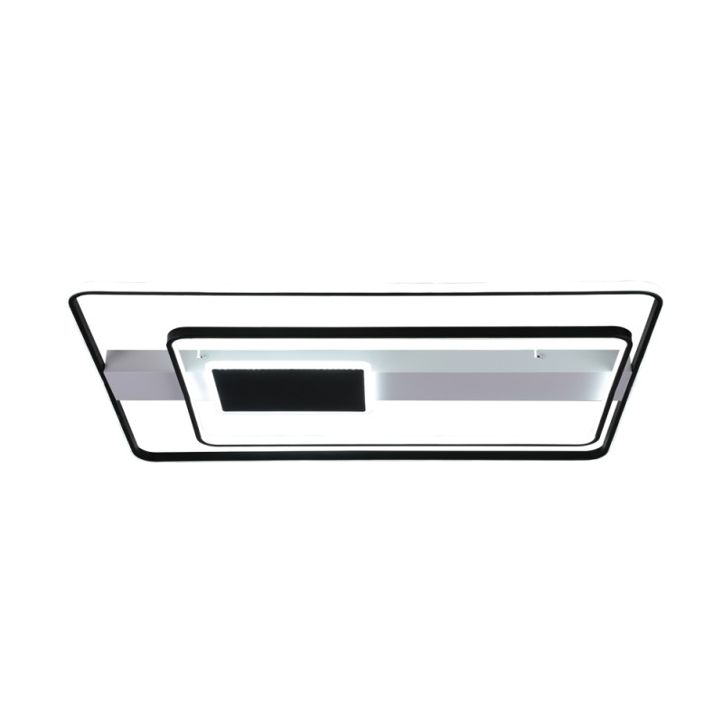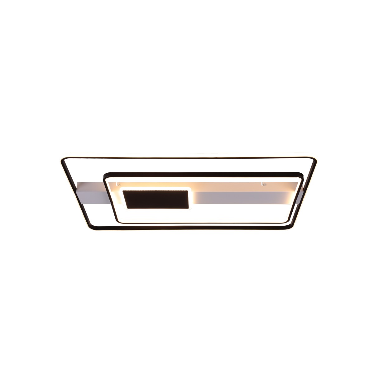 Pixy LED ceiling light for spacious living rooms. Rectangular ceiling lamp with an original design that allows you to create different lighting atmospheres. Includes remote control to regulate the intensity of lumens and select between three colour temperatures. It has a special light configuration for the night and power-on memory.