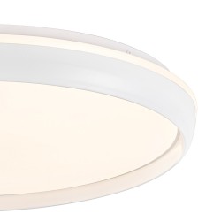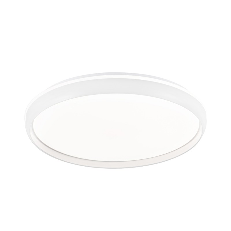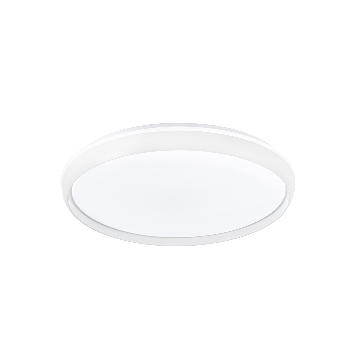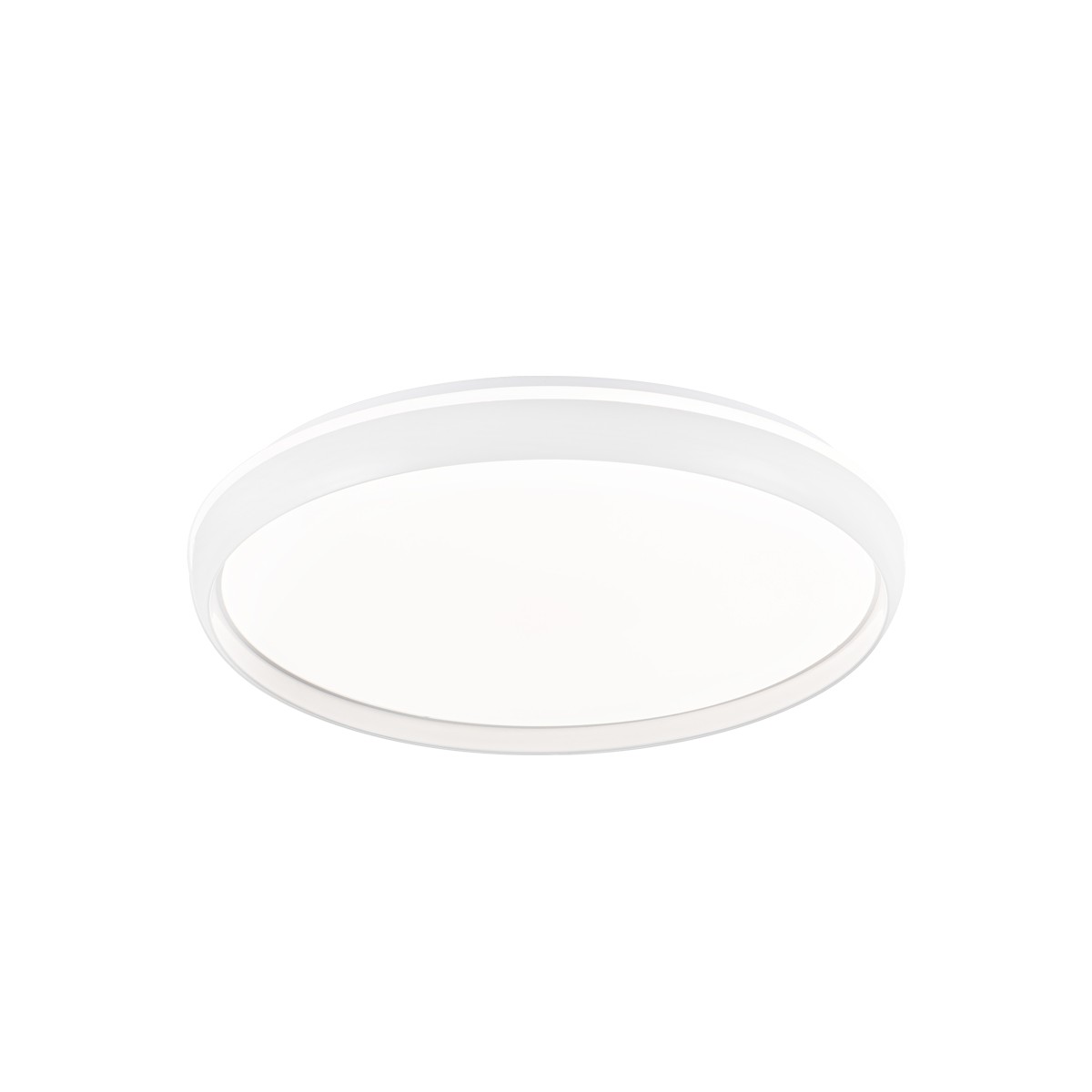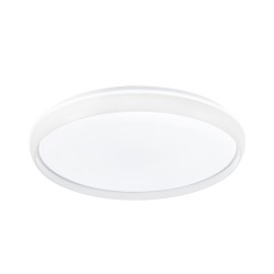 Charly dimmable 3CCT LED ceiling flush light. Ceiling lamp 50 centimetres in diameter designed for the main lighting in a bedroom or living room. It has integrated LED lighting with three intensities (20-50-100%) and three colour shades (3000-4000-6000K), as well as being able to regulate both gradually. It has a night mode light configuration, switch-on memory and timer (1-2H) for programming the switch-off. Remote control included. LED 72W, 7920 lm. and 3CCT.
