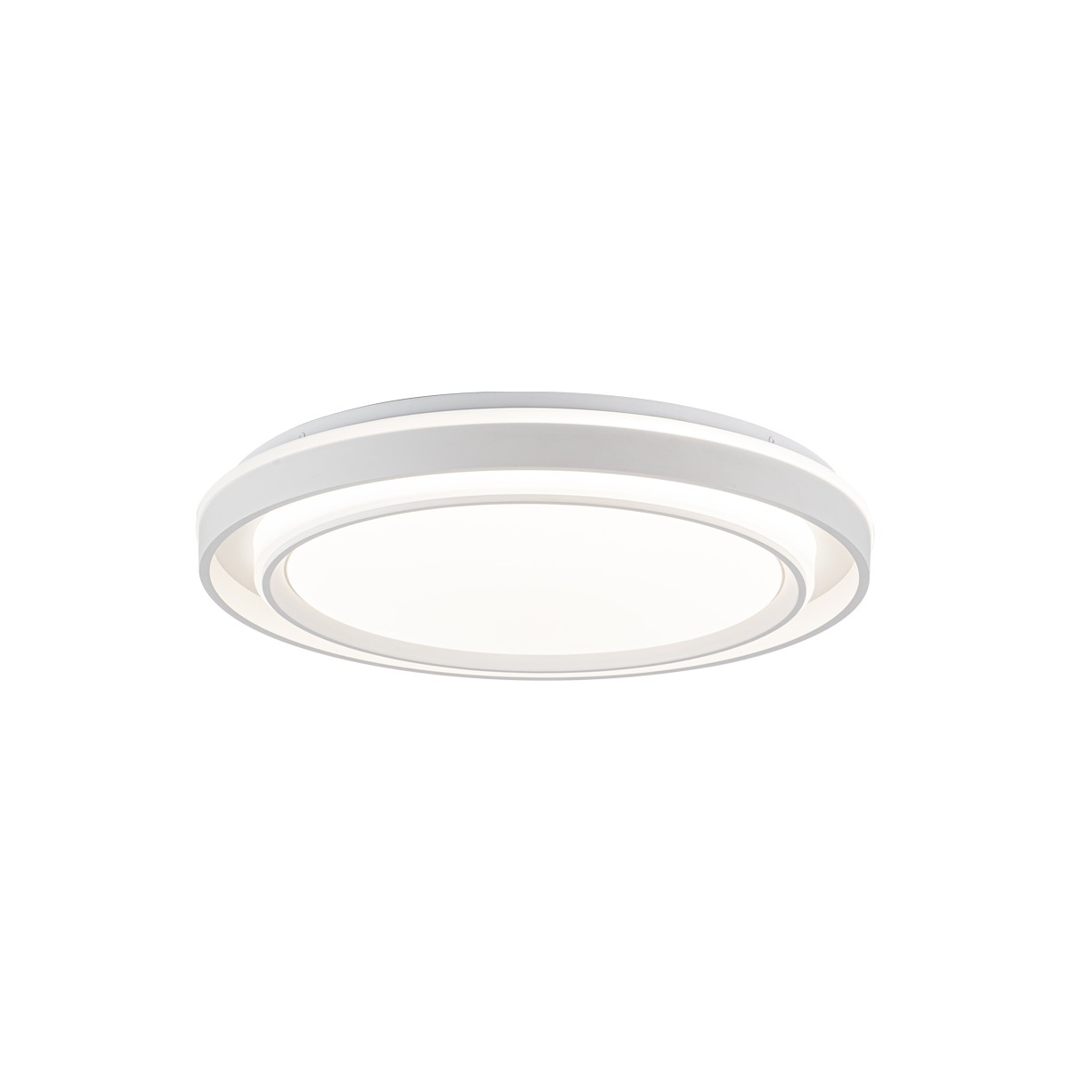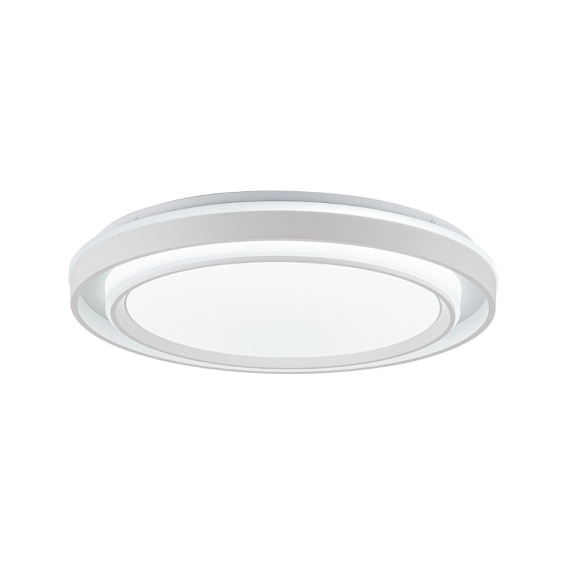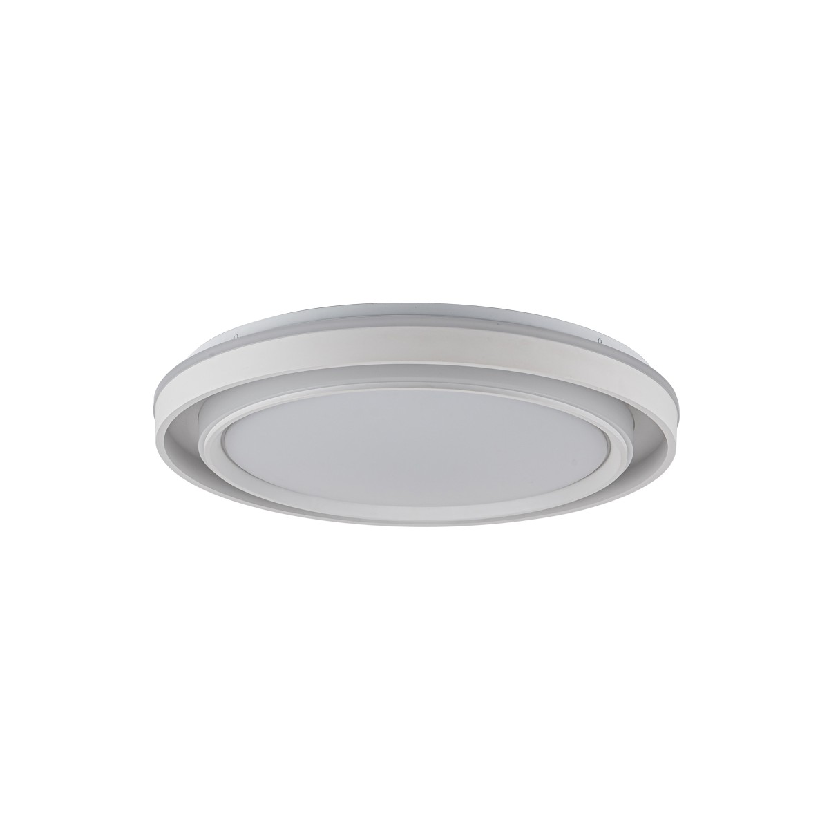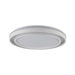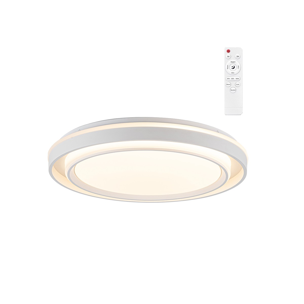 Nasot dimmable 3CCT LED ceiling fush light. Ceiling lamp measuring 50 centimetres designed for the main lighting in a bedroom or living room. It has integrated LED lighting with three intensities (20-50-100%) and three colour shades (3000-4000-6000K), as well as being able to regulate both gradually. It has a night mode light configuration, switch-on memory and timer (1-2H) for programming the switch-off. Remote control included. LED 72W, 7290 lm. and 3CCT.