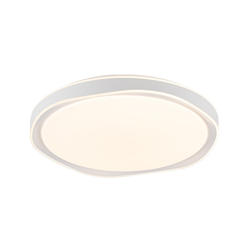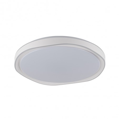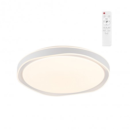 Atlas dimmable 3CCT LED ceiling fush light. Ceiling lamp measuring 50 centimetres designed for the main lighting in a bedroom or living room. It has integrated LED lighting with three intensities (20-50-100%) and three colour shades (3000-4000-6000K), as well as being able to regulate both gradually. It has a night mode light configuration, switch-on memory and timer (1-2H) for programming the switch-off. Remote control included. LED 72W, 7920 lm. and 3CCT.